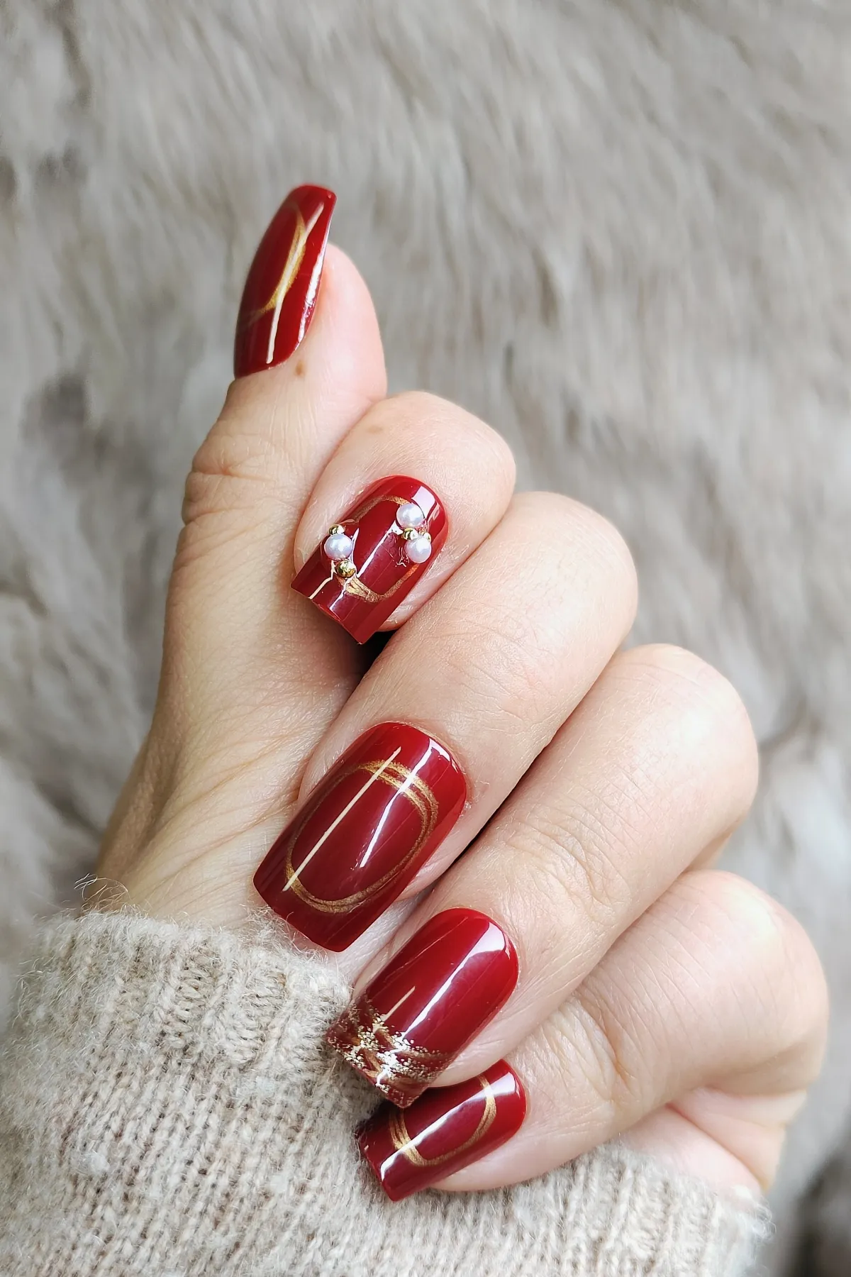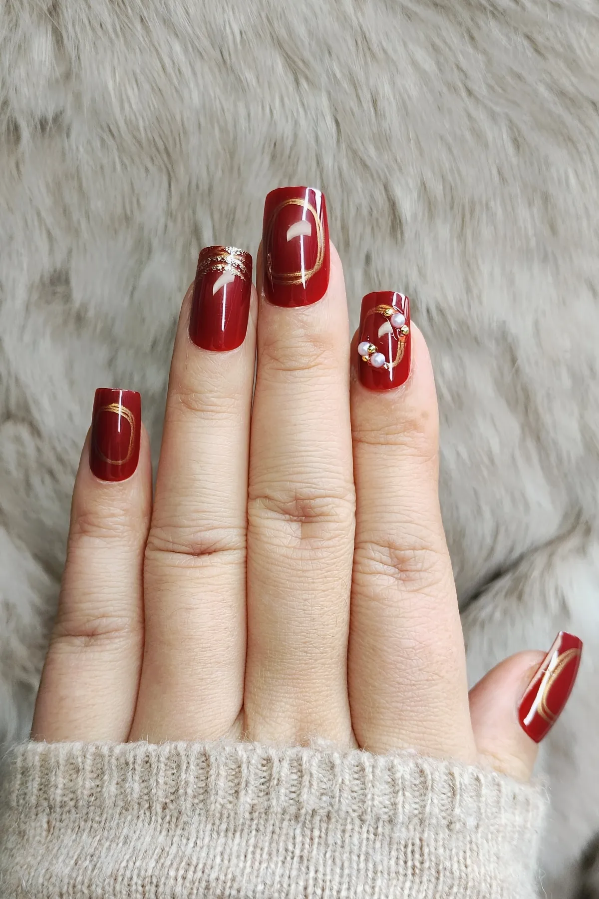 Kırmızı Takma Tırnak Seti Desenli 24’lü Orta Uzun Kare Z552