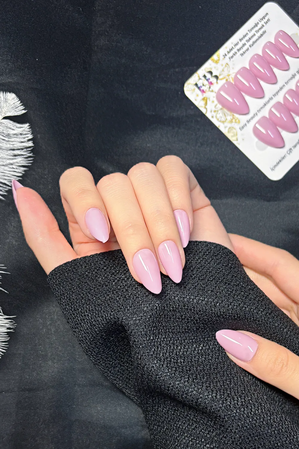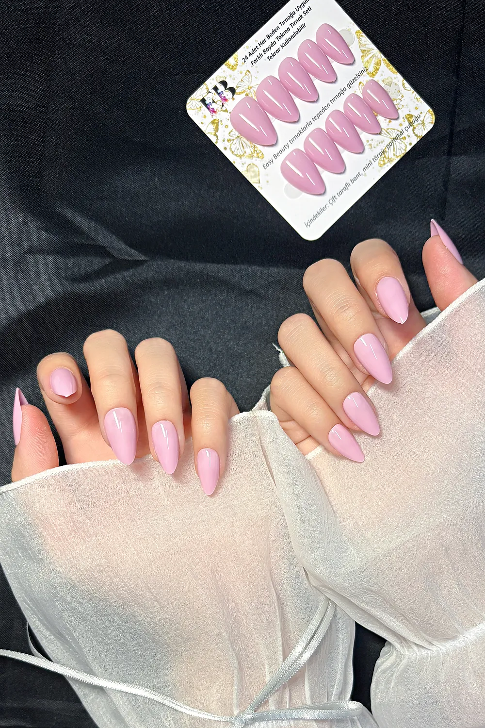 Kısa Badem 24 Adet Takma Tırnak Seti W1508