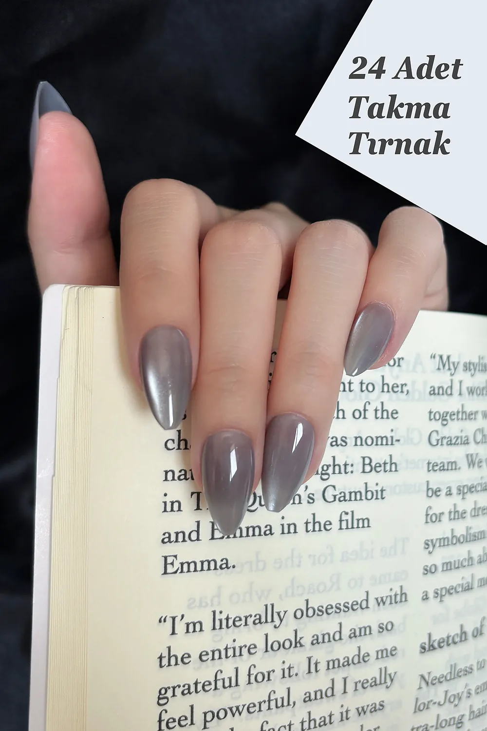 Kısa Badem Kedi Gözü 24 Adet Takma Tırnak Seti W1506