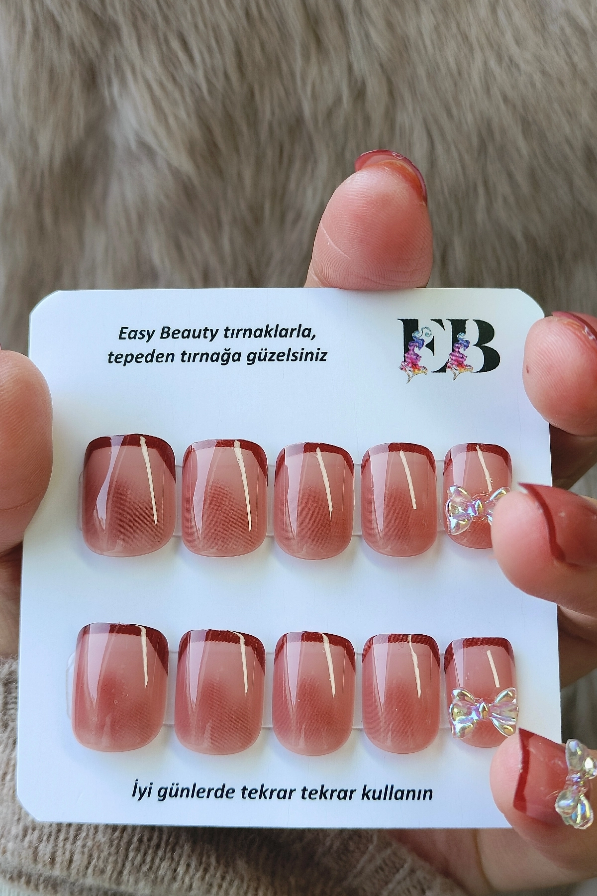Easy Beauty takma tırnakları seçmeniz için başka bir neden ise resimde gördüğünüz ürünü satın alacak olmanızdır. Yani, burada gösterilen fotoğraflarda ya da videolarda herhangi bir oynama yapılmamıştır. Fotoğraf ve videolar Easy Beauty markası tarafından üretilmiştir, başka bir yerden kopyalanmamıştır.