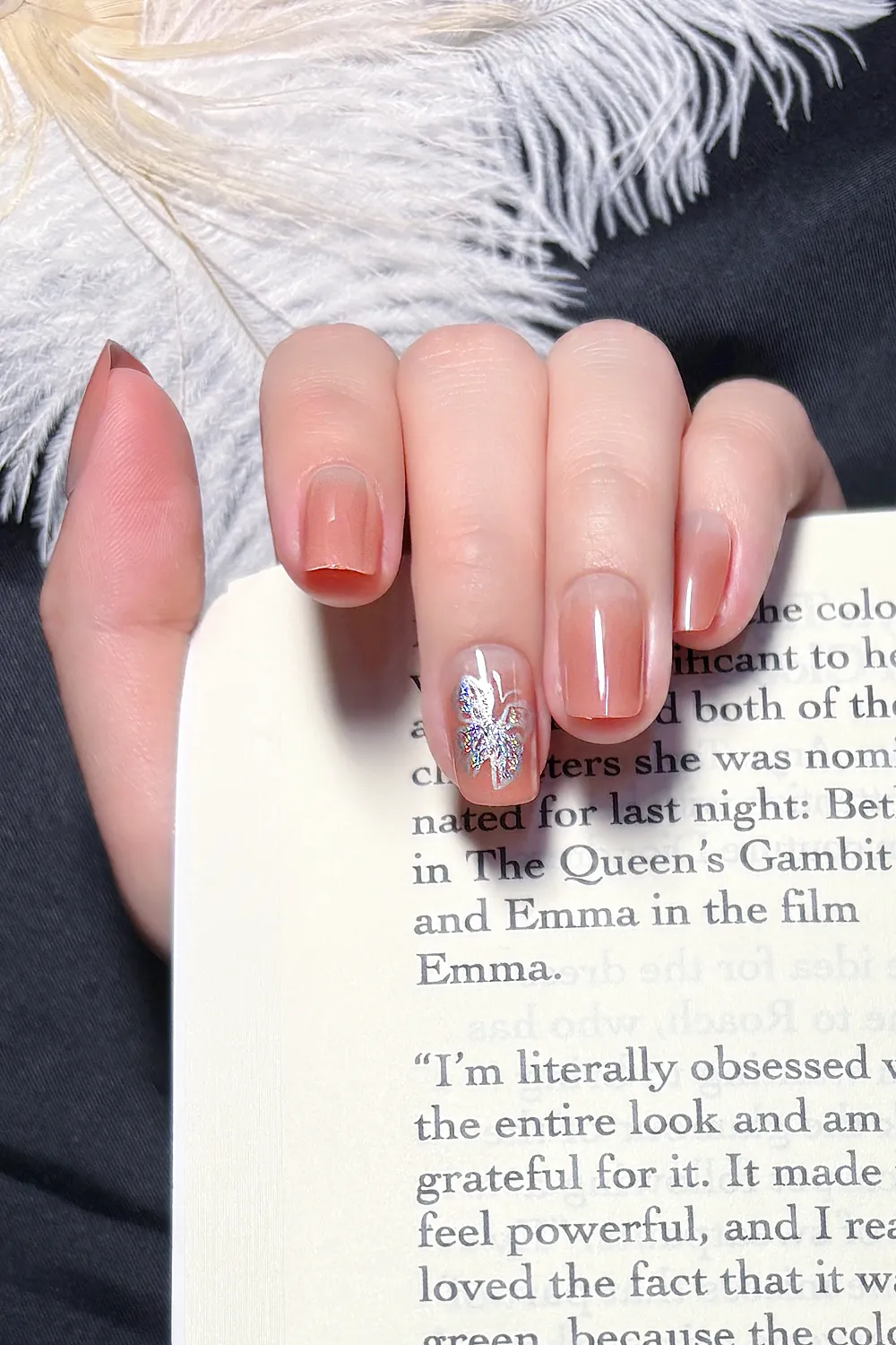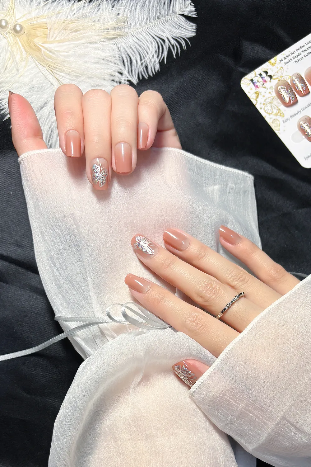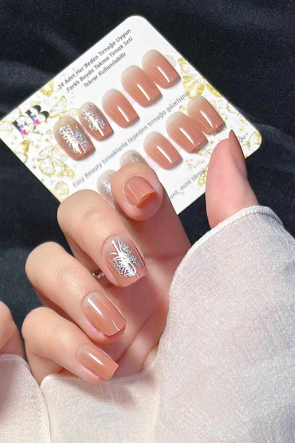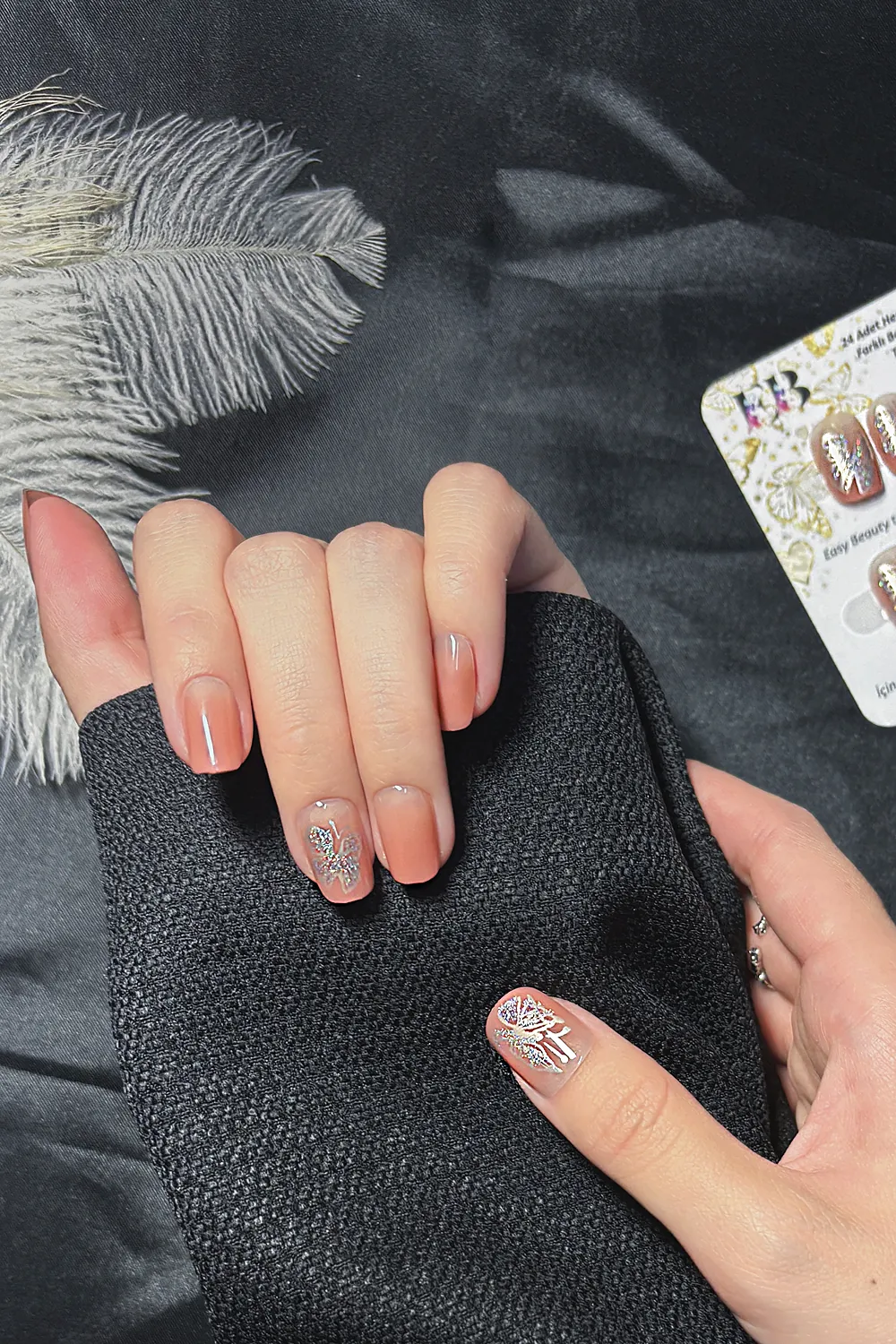 Kısa Küt 24 Adet Takma Tırnak Seti Kelebek Desenli R815