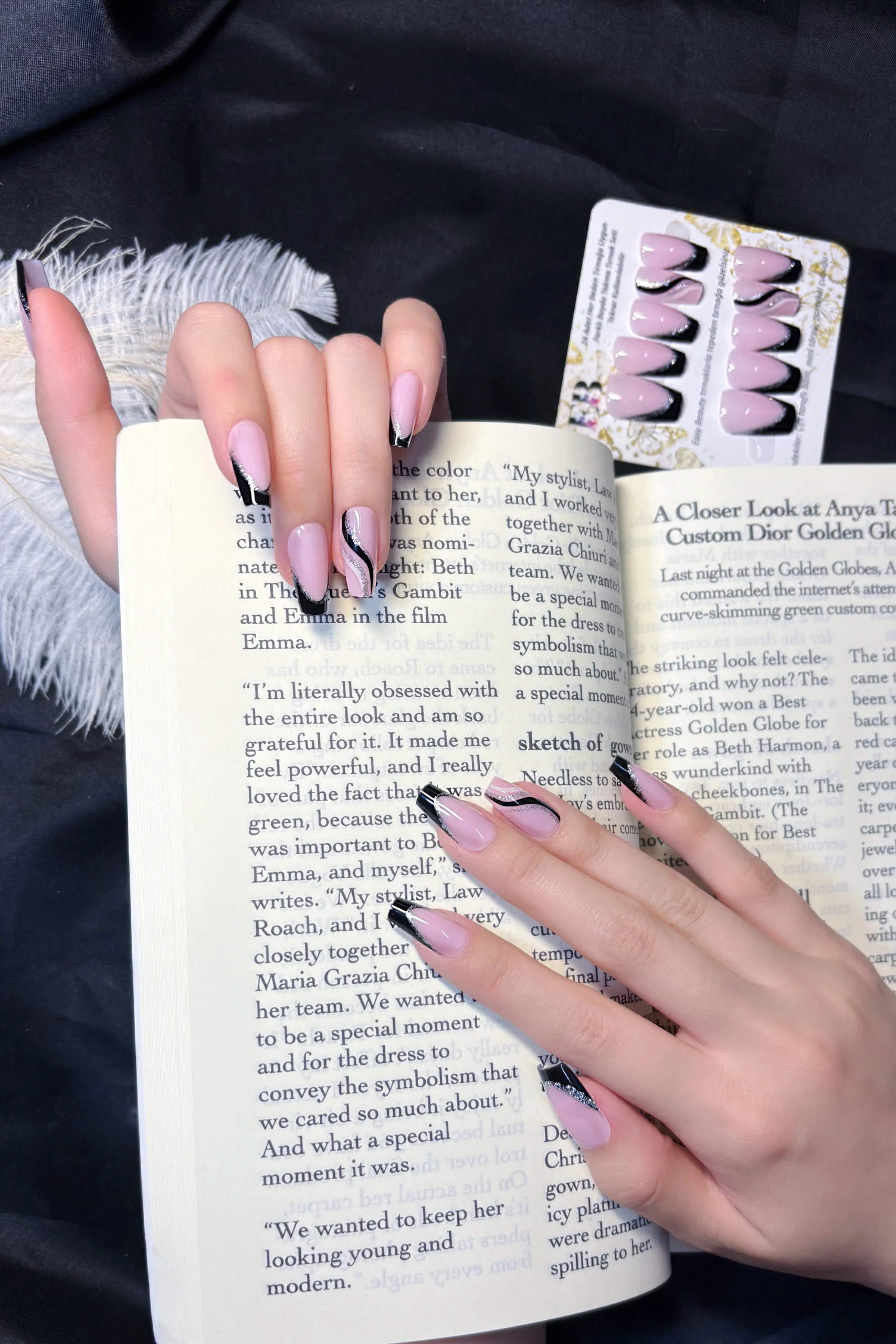 Kısa Siyah French Takma Tırnak Seti 24’lü Desenli Küt Takma Tırnak W298