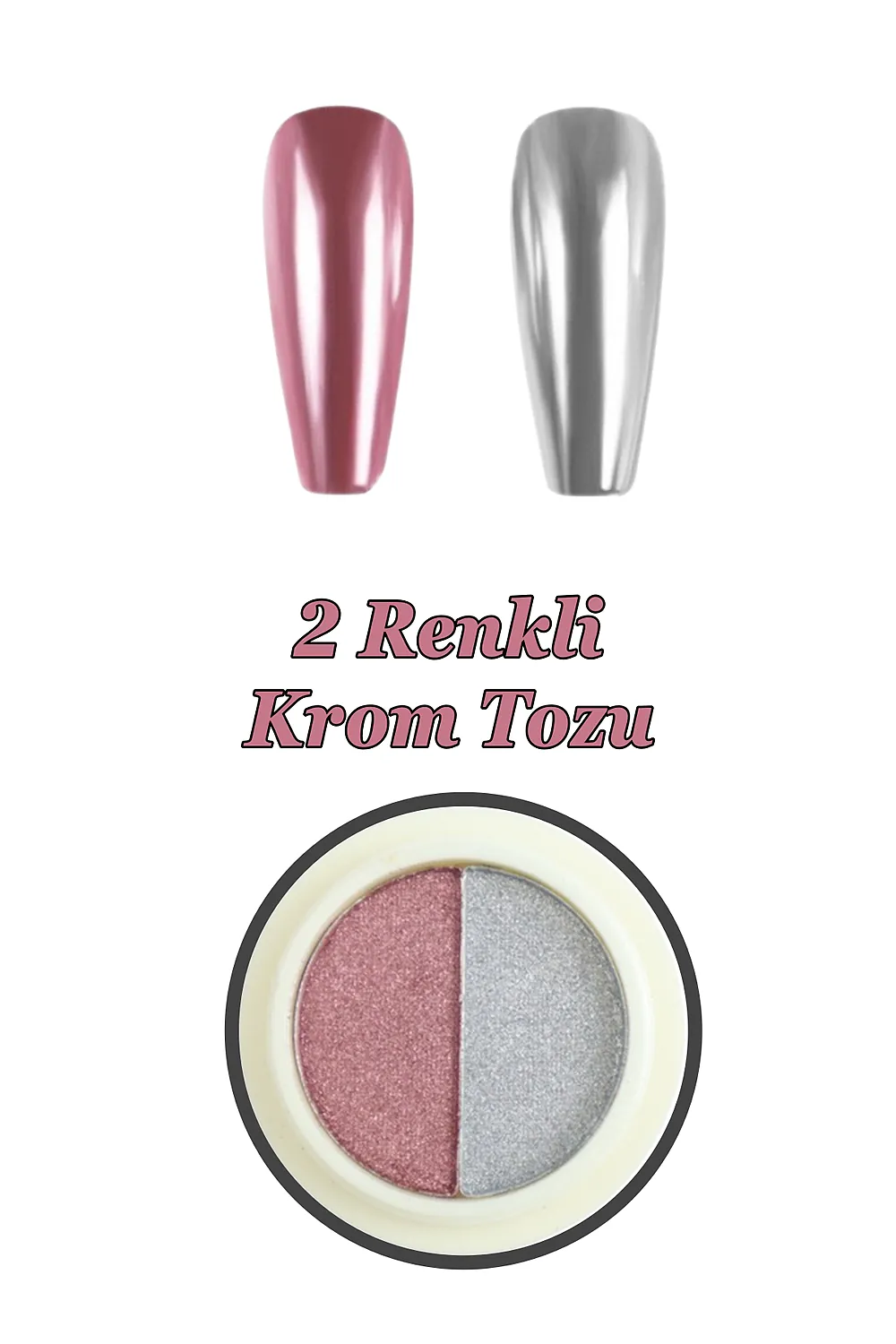 Krom Tozu 2 Renk Nail Art Ayna Tozu İnci Tozu Kullanımı Kolay 1-1