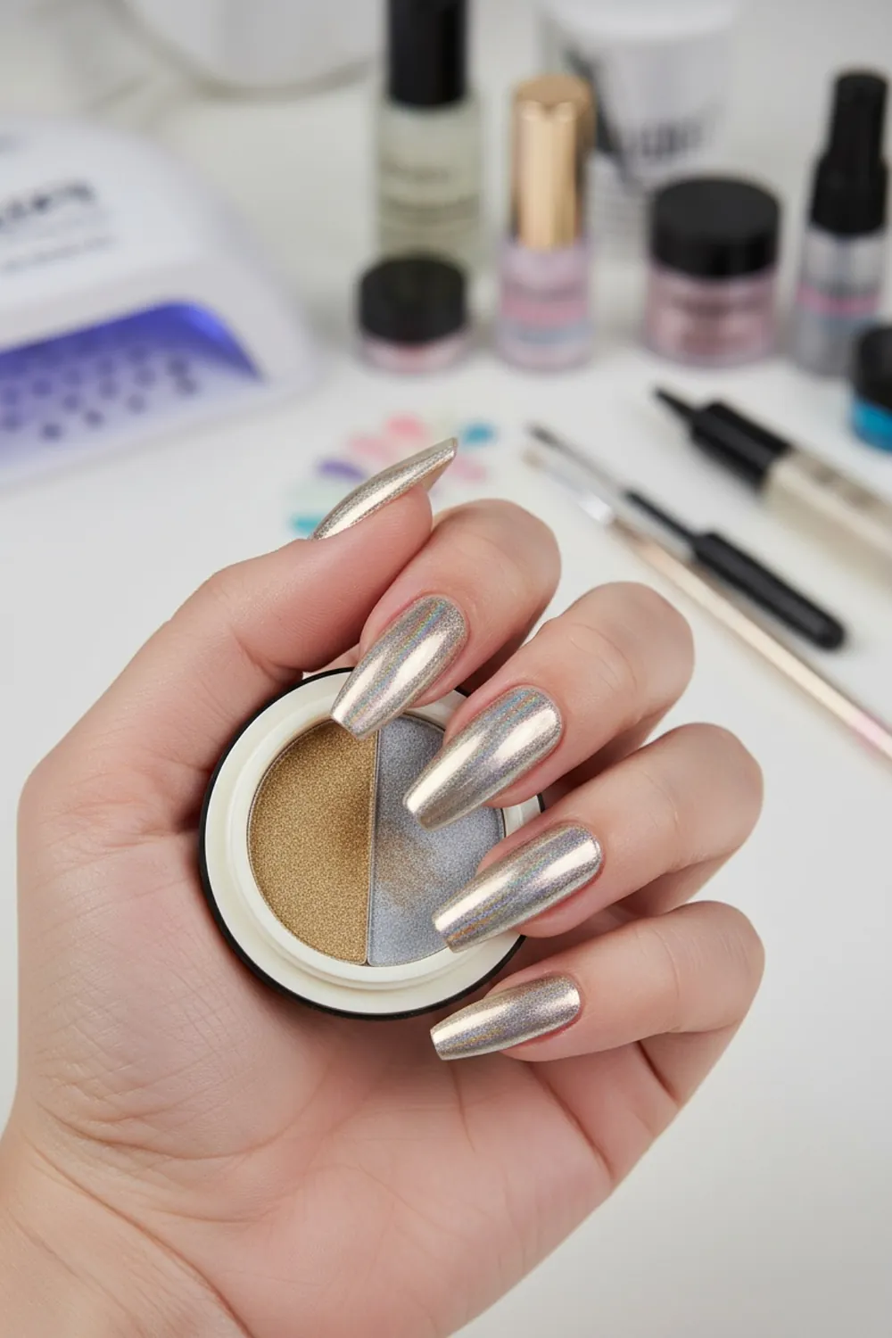 Krom Tozu 2 Renk Nail Art Ayna Tozu İnci Tozu Kullanımı Kolay 5-1