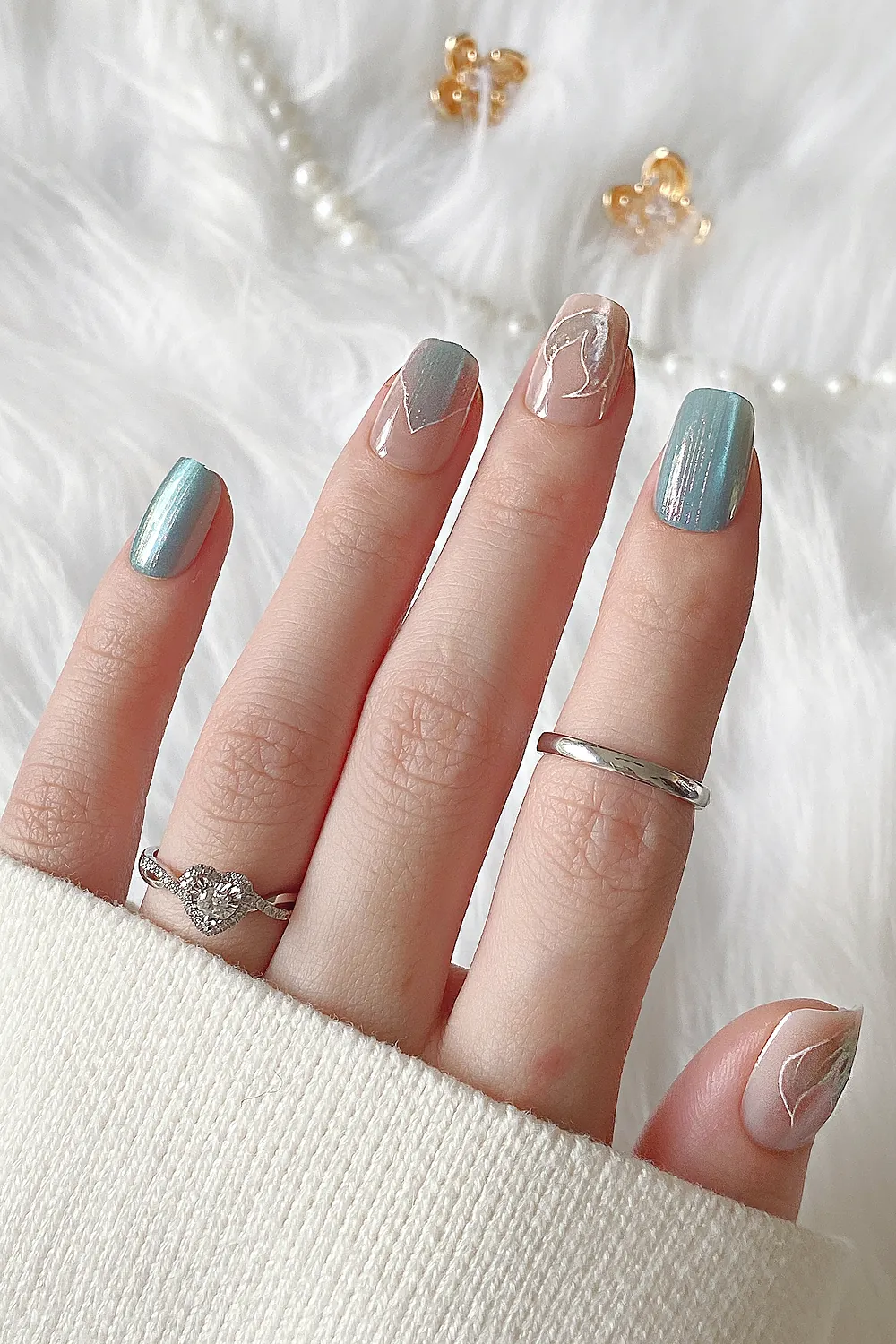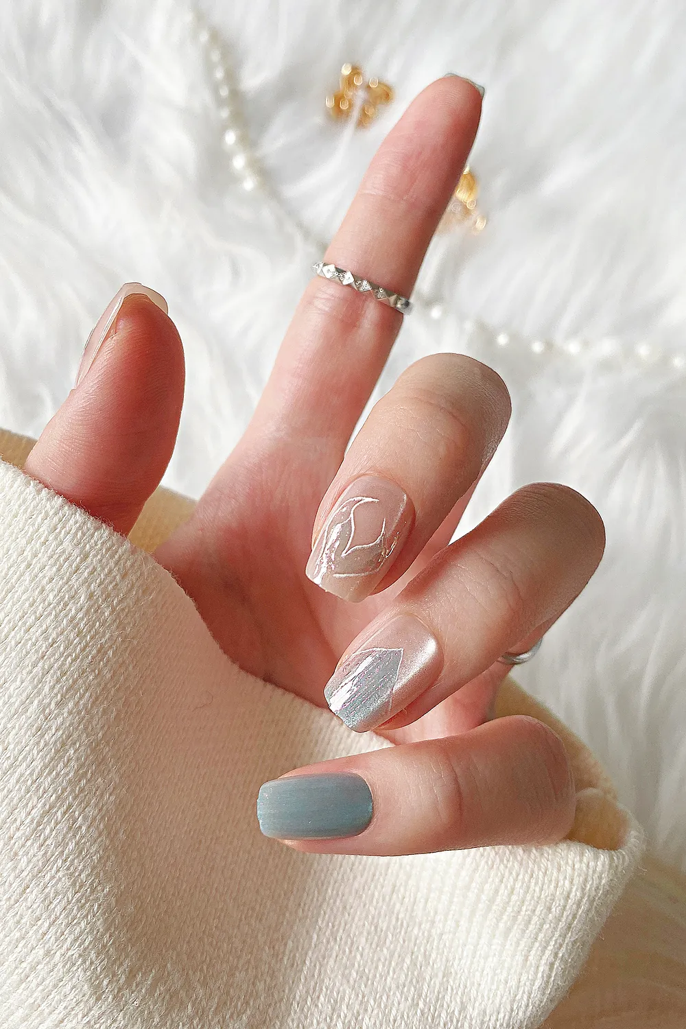 Kedi Gözü Kısa Küt Tırnak 10 Adet Takma Tırnak Seti T006