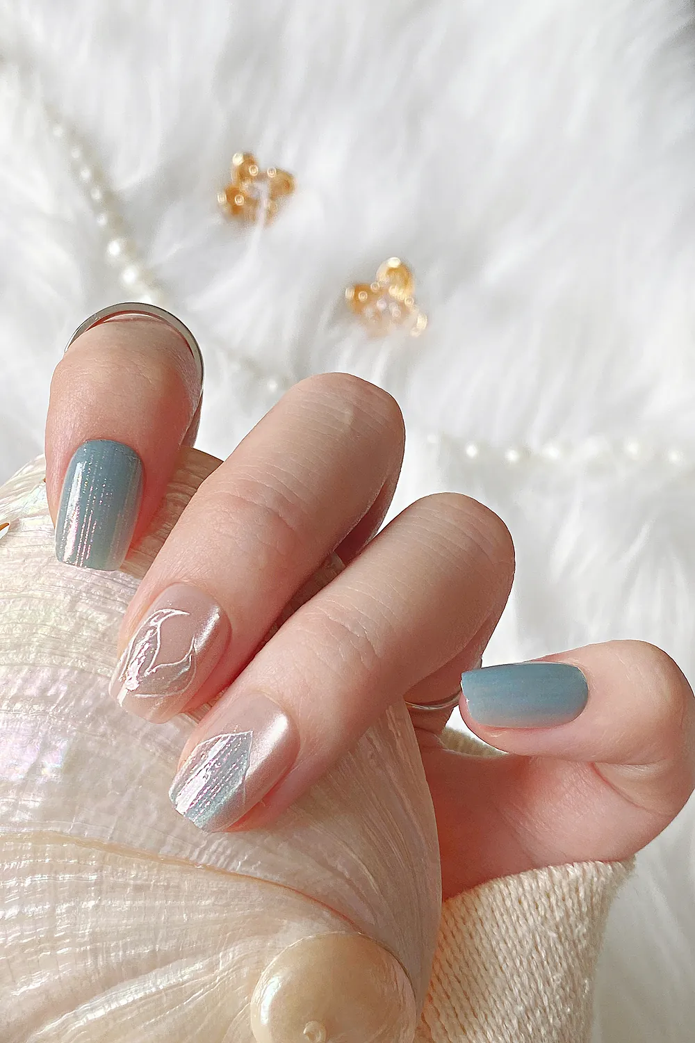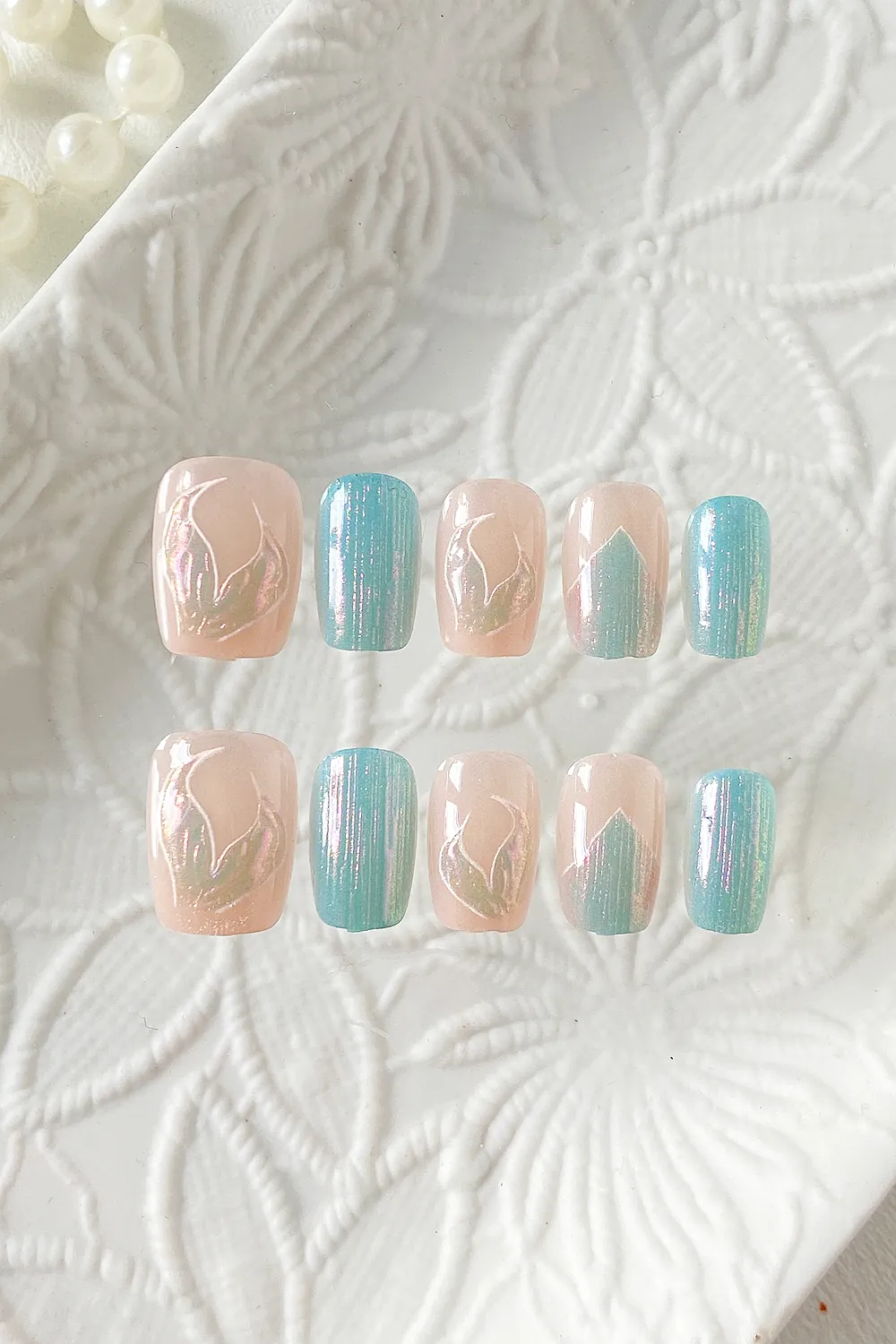 Protez Tırnak Balık Kuyruğu Desen 10 Adet El Yapımı Takma Tırnak Seti 2311