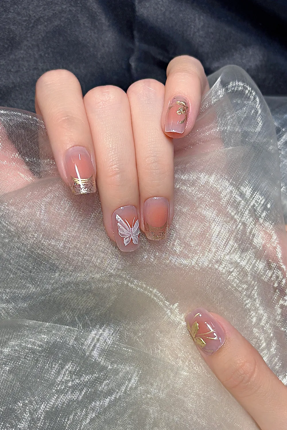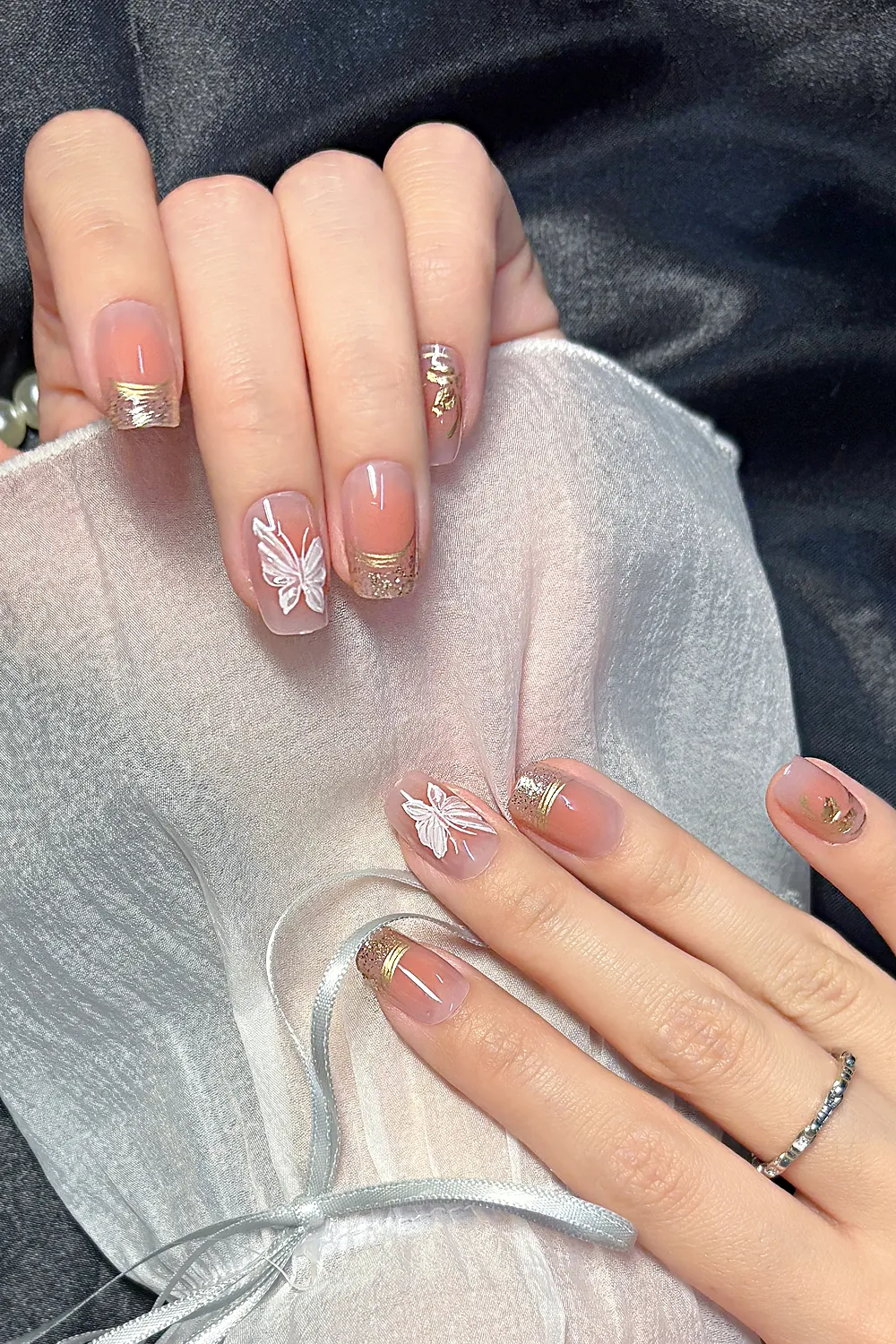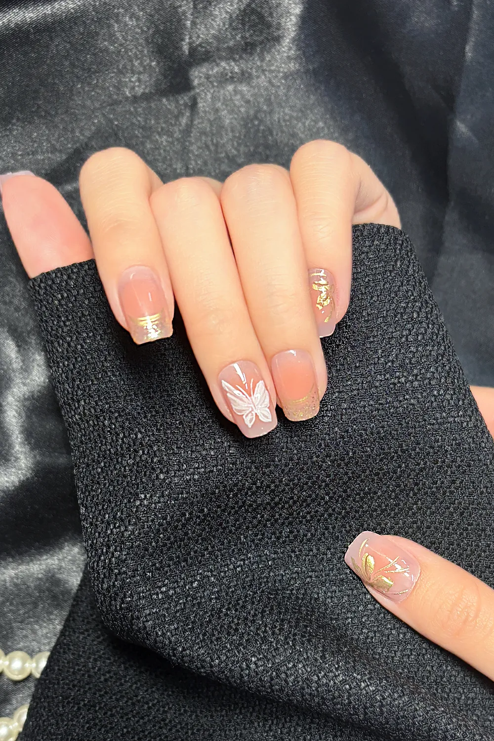 Kısa Küt Altın Kabartmalı 10 Adet Takma Tırnak Seti T102