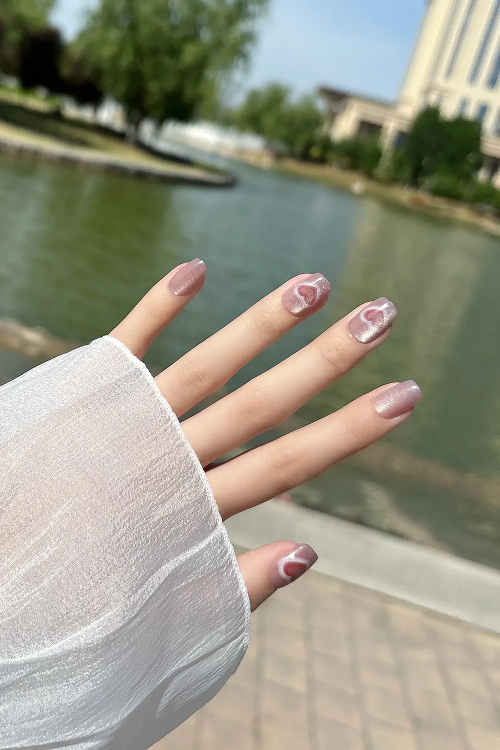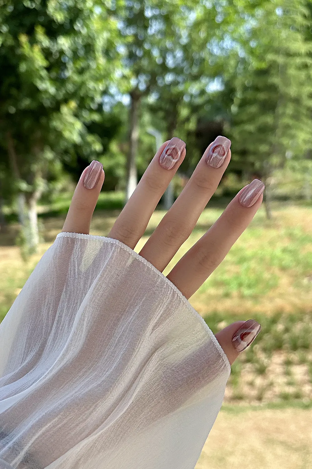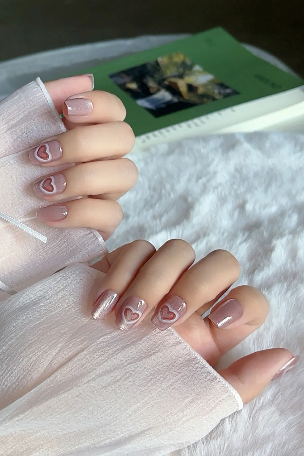 Kısa Takma Tırnak Kedi Gözü Kalp 10 Adet T005
