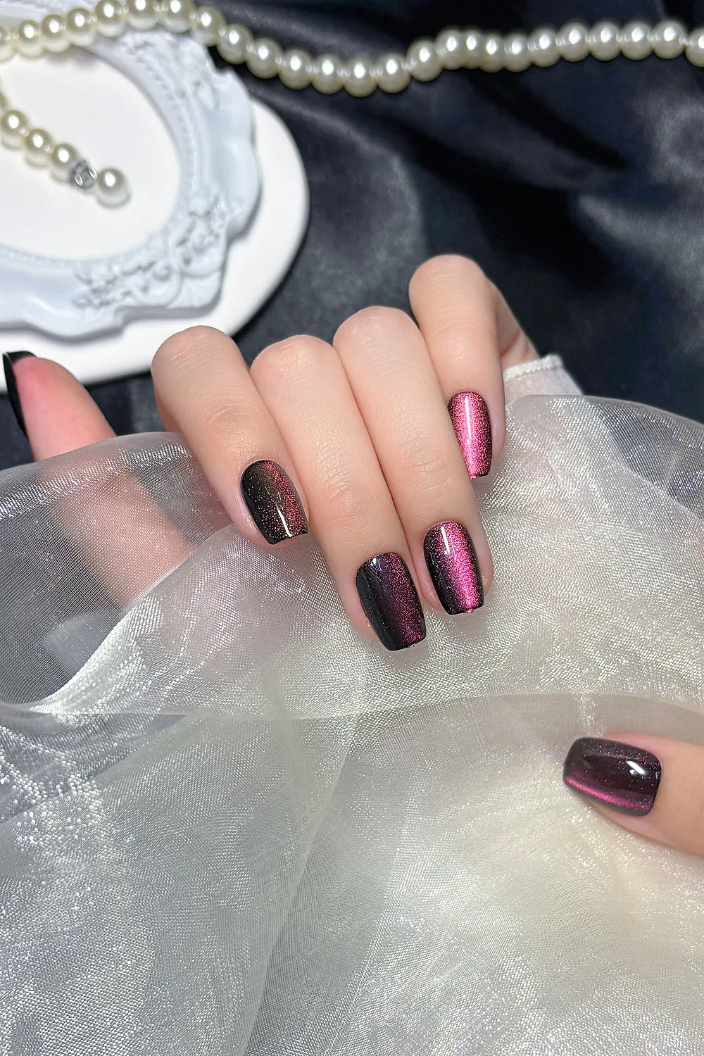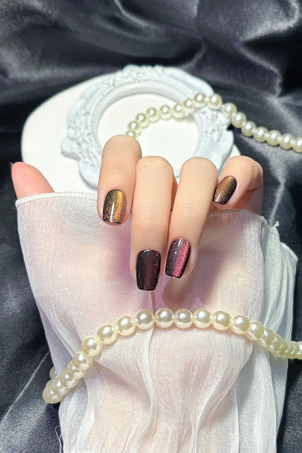 Koyu Bordo Kedi Gözü Kısa Küt 10 Adet Takma Tırnak Seti T109