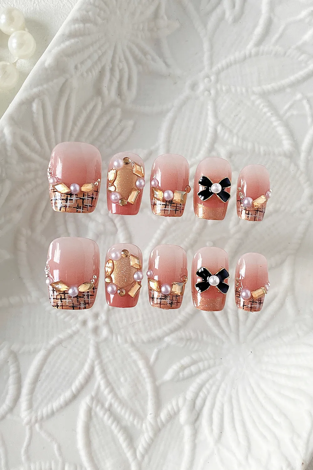Ombre Elmas Taşlı 10 Adet Takma Tırnak Seti T087