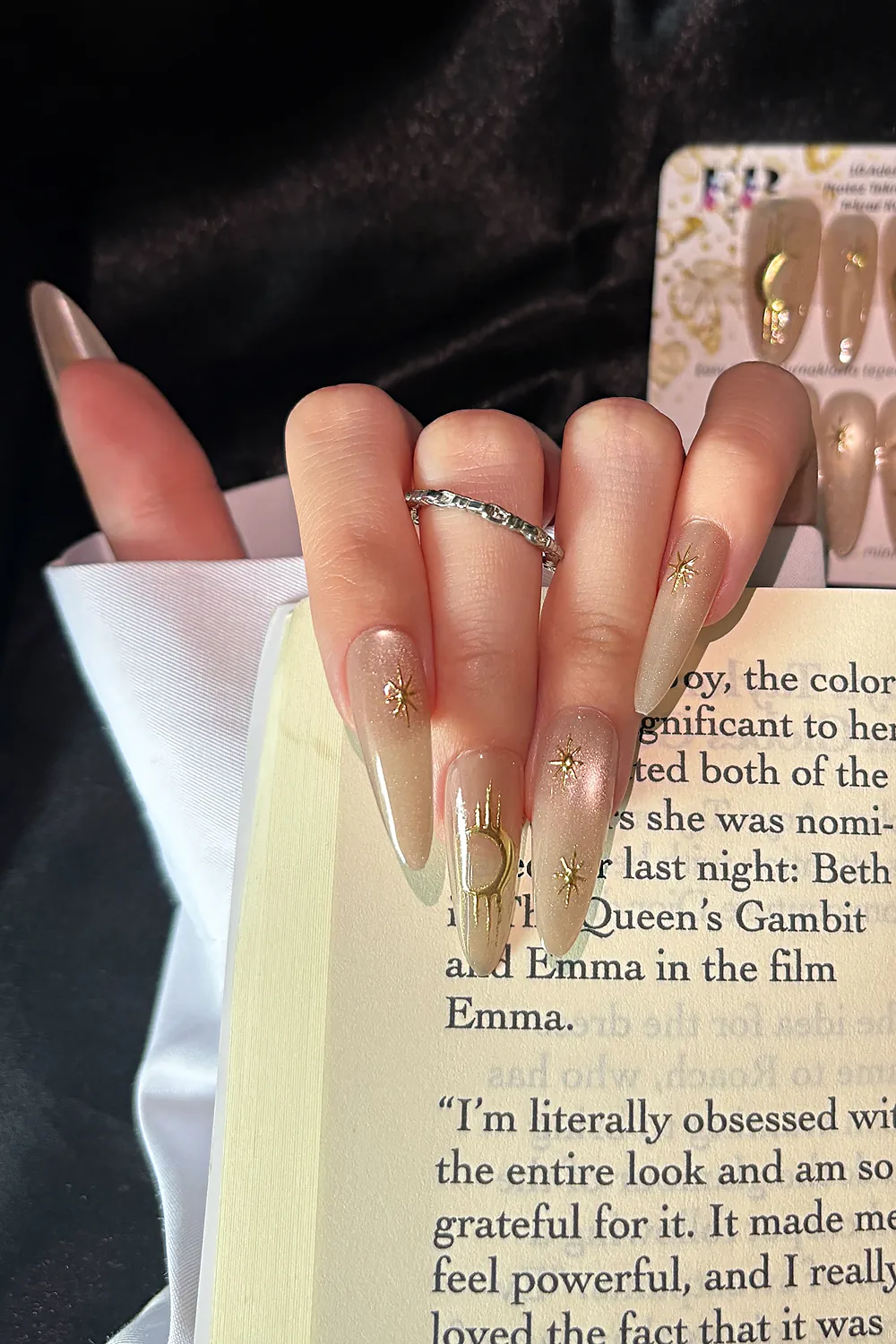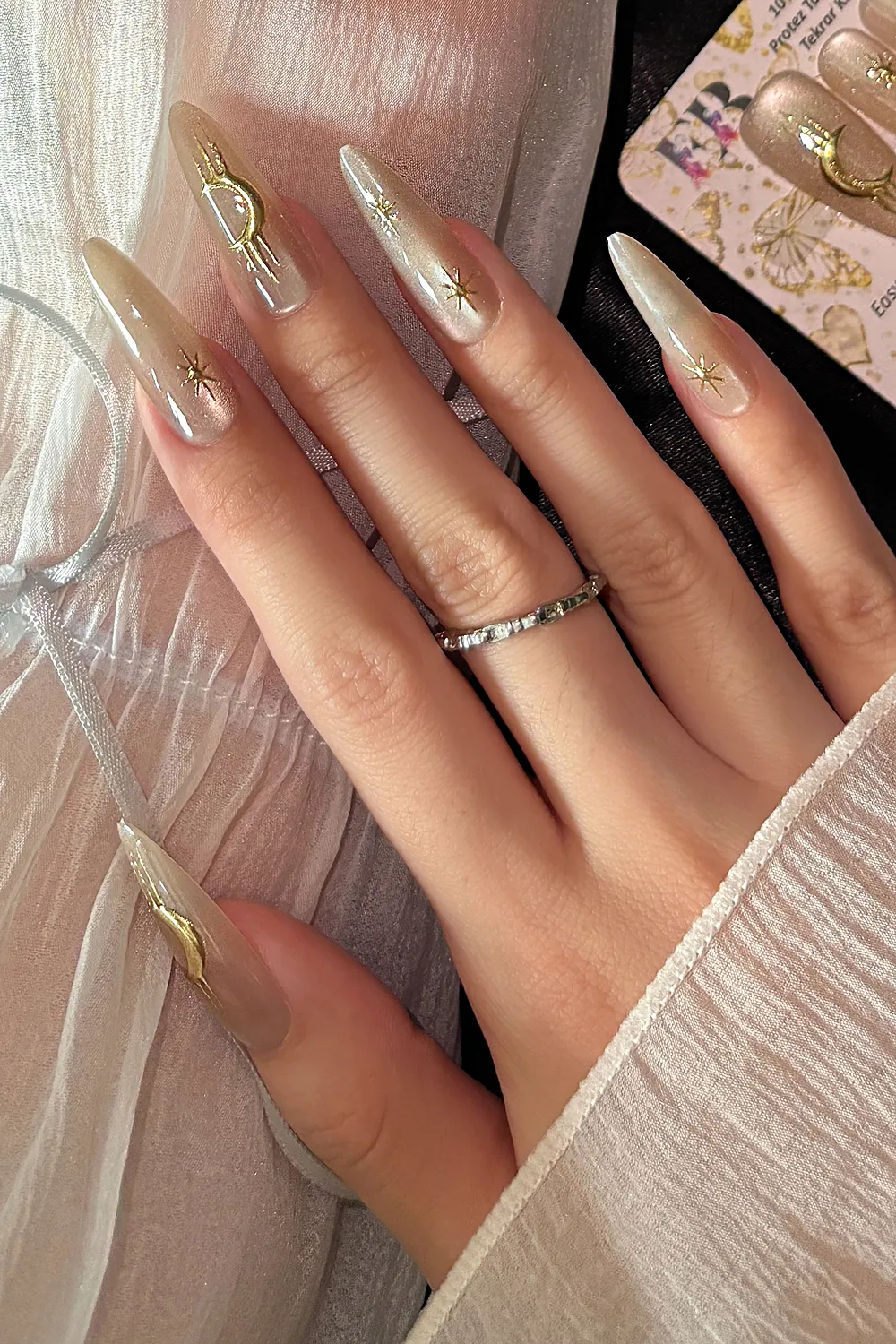 Naturel Kedi Gözü Protez Tırnak 10 Adet El Yapımı Takma Tırnak Seti 2308