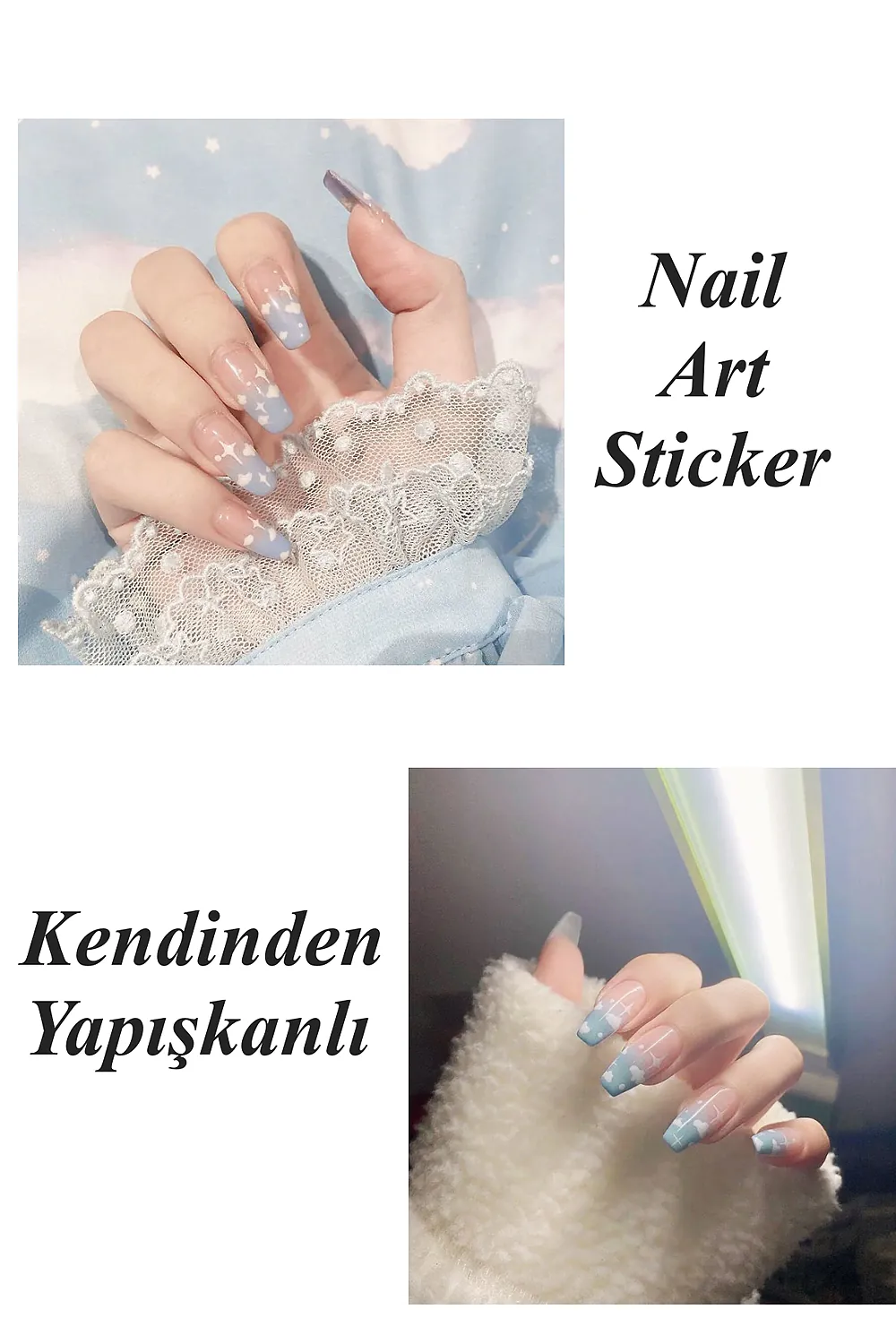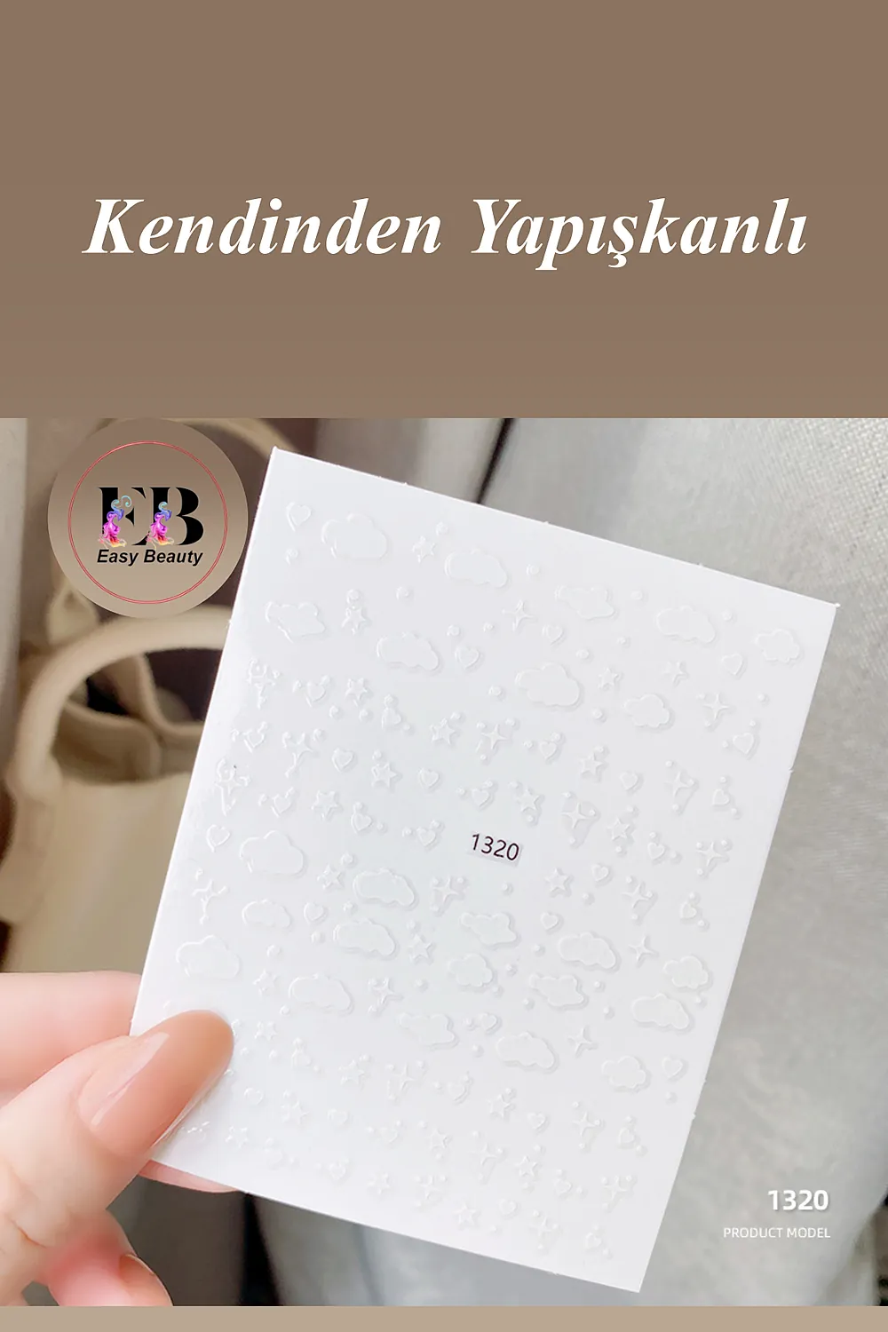 Kendinden yapışkanlı özelliği sayesinde, tırnaklarınıza kolayca uygulanır ve herhangi bir yapıştırıcıya ihtiyaç duymaz; Farklı desenlerdeki sticker seçenekleriyle tırnaklarınıza kişisel bir dokunuş ekleyerek, benzersiz ve şık tırnak tasarımları oluşturabilirsiniz; Tırnak dövmesi olarak da bilinen bu stickerlar, tırnak süsleme sanatında yeni bir boyut sunar ve nail art projelerinizde yaratıcılığınızı sergilemenize olanak tanır; Tırnak süslemede salon kalitesini ev konforunda yaşayın; [Neden Easy Beauty] Easy Beauty sticker’lar kendinden yapışkanlıdır ve herhangi bir yapıştırıcı olmadan rahatlıkla kullanılabilir.; Uygun teknikler kullanıldığı taktirde haftalarca kullanılabilir; [Nerede Kullanılır] Easy Beauty sticker’ları nail art (tırnak süsleme) için kullanabildiğiniz gibi kendinden yapışkanlı olduğu için vücudunuza veya telefon, defter, bilgisayar gibi yüzeylere de kolaylıkla uygulayabilirsiniz; [Nasıl Kullanılır] Tırnağınıza uygulayacaksanız öncelikle tırnak yüzerinizi kağıt törpü ile törpülemenizi tavsiye ederiz.; Takiben tırnak yüzeyinizi temizleyin ve base coat uygulaması yapın.; Şimdi herhangi bir yapıştırıcı kullanmadan Easy Beauty sticker’ı rahatlıkla tırnağınıza yapıştırabilirsiniz.; Üzerine top coat sürdüğünüz taktirde 2-3 hafta rahatlıkla kullanabilirsiniz.