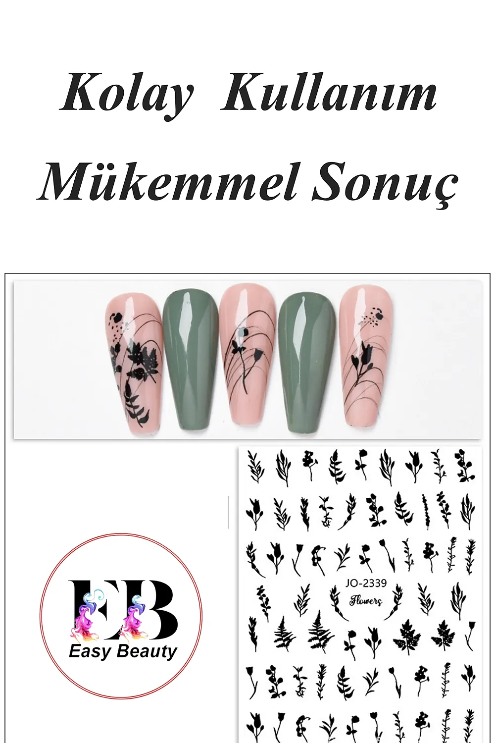 Kendinden yapışkanlı özelliği sayesinde, tırnaklarınıza kolayca uygulanır ve herhangi bir yapıştırıcıya ihtiyaç duymaz; Farklı desenlerdeki sticker seçenekleriyle tırnaklarınıza kişisel bir dokunuş ekleyerek, benzersiz ve şık tırnak tasarımları oluşturabilirsiniz; Tırnak dövmesi olarak da bilinen bu stickerlar, tırnak süsleme sanatında yeni bir boyut sunar ve nail art projelerinizde yaratıcılığınızı sergilemenize olanak tanır; Tırnak süslemede salon kalitesini ev konforunda yaşayın; [Neden Easy Beauty] Easy Beauty sticker’lar kendinden yapışkanlıdır ve herhangi bir yapıştırıcı olmadan rahatlıkla kullanılabilir.; Uygun teknikler kullanıldığı taktirde haftalarca kullanılabilir; [Nerede Kullanılır] Easy Beauty sticker’ları nail art (tırnak süsleme) için kullanabildiğiniz gibi kendinden yapışkanlı olduğu için vücudunuza veya telefon, defter, bilgisayar gibi yüzeylere de kolaylıkla uygulayabilirsiniz; [Nasıl Kullanılır] Tırnağınıza uygulayacaksanız öncelikle tırnak yüzerinizi kağıt törpü ile törpülemenizi tavsiye ederiz.; Takiben tırnak yüzeyinizi temizleyin ve base coat uygulaması yapın.; Şimdi herhangi bir yapıştırıcı kullanmadan Easy Beauty sticker’ı rahatlıkla tırnağınıza yapıştırabilirsiniz.; Üzerine top coat sürdüğünüz taktirde 2-3 hafta rahatlıkla kullanabilirsiniz.
