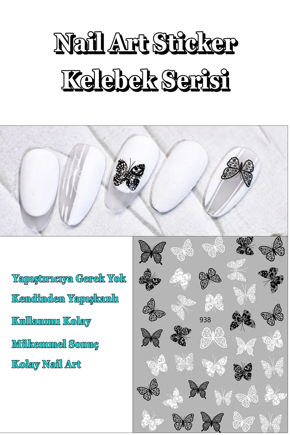 Kendinden yapışkanlı özelliği sayesinde, tırnaklarınıza kolayca uygulanır ve herhangi bir yapıştırıcıya ihtiyaç duymaz; Farklı desenlerdeki sticker seçenekleriyle tırnaklarınıza kişisel bir dokunuş ekleyerek, benzersiz ve şık tırnak tasarımları oluşturabilirsiniz; Tırnak dövmesi olarak da bilinen bu stickerlar, tırnak süsleme sanatında yeni bir boyut sunar ve nail art projelerinizde yaratıcılığınızı sergilemenize olanak tanır; Tırnak süslemede salon kalitesini ev konforunda yaşayın; [Neden Easy Beauty] Easy Beauty sticker’lar kendinden yapışkanlıdır ve herhangi bir yapıştırıcı olmadan rahatlıkla kullanılabilir.; Uygun teknikler kullanıldığı taktirde haftalarca kullanılabilir; [Nerede Kullanılır] Easy Beauty sticker’ları nail art (tırnak süsleme) için kullanabildiğiniz gibi kendinden yapışkanlı olduğu için vücudunuza veya telefon, defter, bilgisayar gibi yüzeylere de kolaylıkla uygulayabilirsiniz; [Nasıl Kullanılır] Tırnağınıza uygulayacaksanız öncelikle tırnak yüzerinizi kağıt törpü ile törpülemenizi tavsiye ederiz.; Takiben tırnak yüzeyinizi temizleyin ve base coat uygulaması yapın.; Şimdi herhangi bir yapıştırıcı kullanmadan Easy Beauty sticker’ı rahatlıkla tırnağınıza yapıştırabilirsiniz.; Üzerine top coat sürdüğünüz taktirde 2-3 hafta rahatlıkla kullanabilirsiniz.