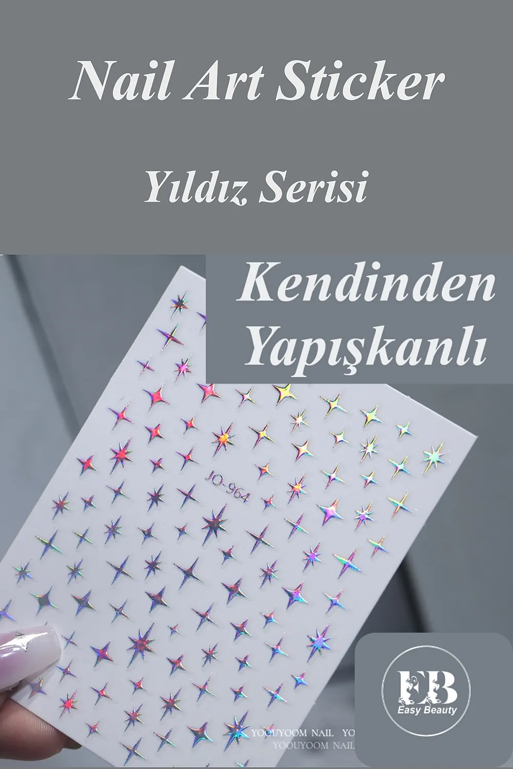 Kendinden yapışkanlı özelliği sayesinde, tırnaklarınıza kolayca uygulanır ve herhangi bir yapıştırıcıya ihtiyaç duymaz; Farklı desenlerdeki sticker seçenekleriyle tırnaklarınıza kişisel bir dokunuş ekleyerek, benzersiz ve şık tırnak tasarımları oluşturabilirsiniz; Tırnak dövmesi olarak da bilinen bu stickerlar, tırnak süsleme sanatında yeni bir boyut sunar ve nail art projelerinizde yaratıcılığınızı sergilemenize olanak tanır; Tırnak süslemede salon kalitesini ev konforunda yaşayın; [Neden Easy Beauty] Easy Beauty sticker’lar kendinden yapışkanlıdır ve herhangi bir yapıştırıcı olmadan rahatlıkla kullanılabilir.; Uygun teknikler kullanıldığı taktirde haftalarca kullanılabilir; [Nerede Kullanılır] Easy Beauty sticker’ları nail art (tırnak süsleme) için kullanabildiğiniz gibi kendinden yapışkanlı olduğu için vücudunuza veya telefon, defter, bilgisayar gibi yüzeylere de kolaylıkla uygulayabilirsiniz; [Nasıl Kullanılır] Tırnağınıza uygulayacaksanız öncelikle tırnak yüzerinizi kağıt törpü ile törpülemenizi tavsiye ederiz.; Takiben tırnak yüzeyinizi temizleyin ve base coat uygulaması yapın.; Şimdi herhangi bir yapıştırıcı kullanmadan Easy Beauty sticker’ı rahatlıkla tırnağınıza yapıştırabilirsiniz.; Üzerine top coat sürdüğünüz taktirde 2-3 hafta rahatlıkla kullanabilirsiniz.