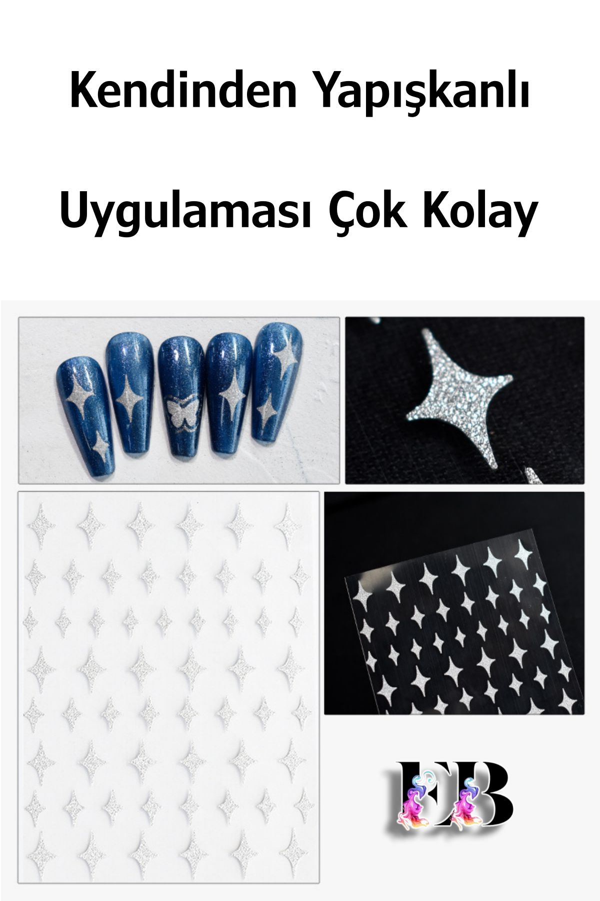 Kendinden yapışkanlı özelliği sayesinde, tırnaklarınıza kolayca uygulanır ve herhangi bir yapıştırıcıya ihtiyaç duymaz; Farklı desenlerdeki sticker seçenekleriyle tırnaklarınıza kişisel bir dokunuş ekleyerek, benzersiz ve şık tırnak tasarımları oluşturabilirsiniz; Tırnak dövmesi olarak da bilinen bu stickerlar, tırnak süsleme sanatında yeni bir boyut sunar ve nail art projelerinizde yaratıcılığınızı sergilemenize olanak tanır; Tırnak süslemede salon kalitesini ev konforunda yaşayın; [Neden Easy Beauty] Easy Beauty sticker’lar kendinden yapışkanlıdır ve herhangi bir yapıştırıcı olmadan rahatlıkla kullanılabilir.; Uygun teknikler kullanıldığı taktirde haftalarca kullanılabilir; [Nerede Kullanılır] Easy Beauty sticker’ları nail art (tırnak süsleme) için kullanabildiğiniz gibi kendinden yapışkanlı olduğu için vücudunuza veya telefon, defter, bilgisayar gibi yüzeylere de kolaylıkla uygulayabilirsiniz; [Nasıl Kullanılır] Tırnağınıza uygulayacaksanız öncelikle tırnak yüzerinizi kağıt törpü ile törpülemenizi tavsiye ederiz.; Takiben tırnak yüzeyinizi temizleyin ve base coat uygulaması yapın.; Şimdi herhangi bir yapıştırıcı kullanmadan Easy Beauty sticker’ı rahatlıkla tırnağınıza yapıştırabilirsiniz.; Üzerine top coat sürdüğünüz taktirde 2-3 hafta rahatlıkla kullanabilirsiniz.