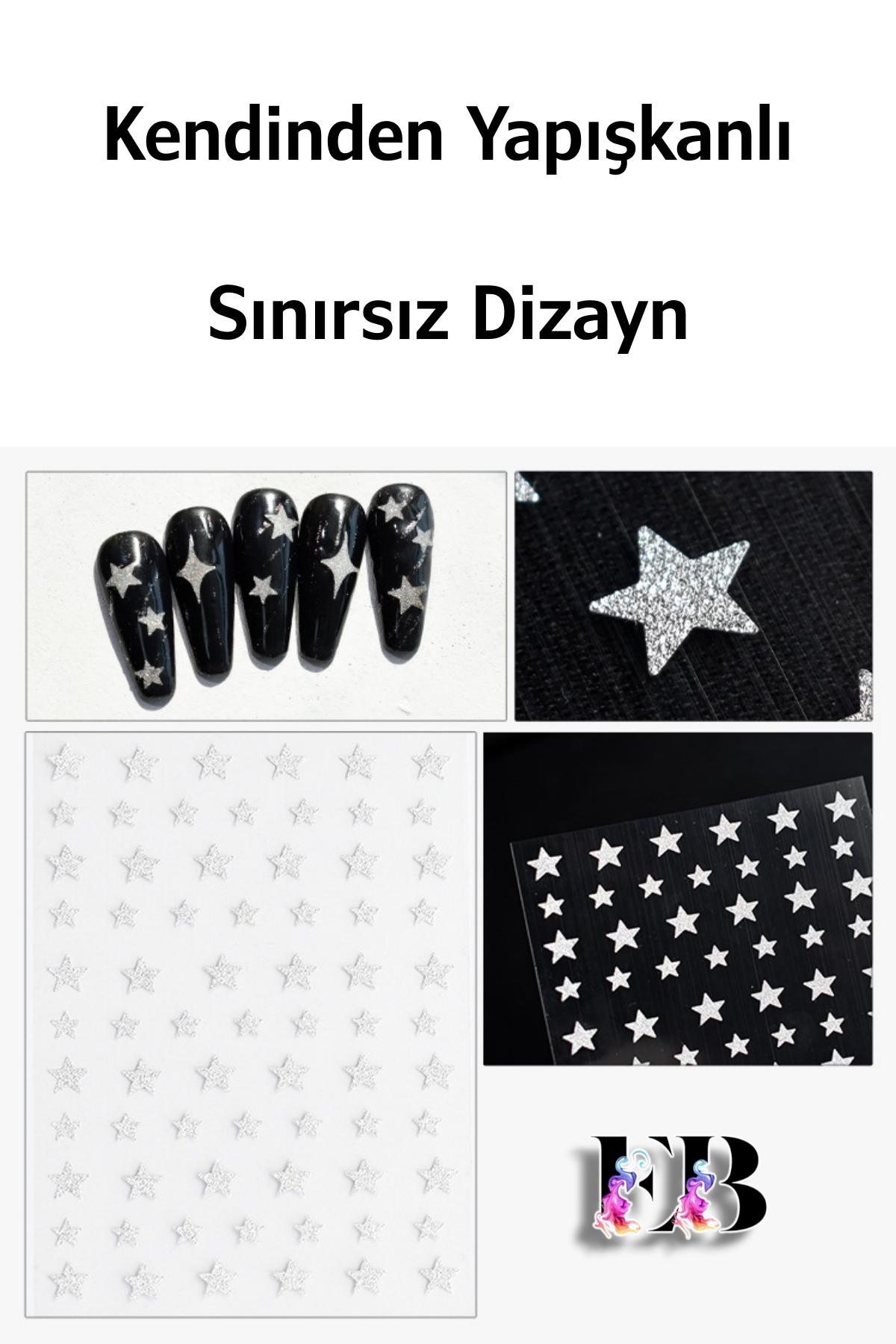 Kendinden yapışkanlı özelliği sayesinde, tırnaklarınıza kolayca uygulanır ve herhangi bir yapıştırıcıya ihtiyaç duymaz; Farklı desenlerdeki sticker seçenekleriyle tırnaklarınıza kişisel bir dokunuş ekleyerek, benzersiz ve şık tırnak tasarımları oluşturabilirsiniz; Tırnak dövmesi olarak da bilinen bu stickerlar, tırnak süsleme sanatında yeni bir boyut sunar ve nail art projelerinizde yaratıcılığınızı sergilemenize olanak tanır; Tırnak süslemede salon kalitesini ev konforunda yaşayın; [Neden Easy Beauty] Easy Beauty sticker’lar kendinden yapışkanlıdır ve herhangi bir yapıştırıcı olmadan rahatlıkla kullanılabilir.; Uygun teknikler kullanıldığı taktirde haftalarca kullanılabilir; [Nerede Kullanılır] Easy Beauty sticker’ları nail art (tırnak süsleme) için kullanabildiğiniz gibi kendinden yapışkanlı olduğu için vücudunuza veya telefon, defter, bilgisayar gibi yüzeylere de kolaylıkla uygulayabilirsiniz; [Nasıl Kullanılır] Tırnağınıza uygulayacaksanız öncelikle tırnak yüzerinizi kağıt törpü ile törpülemenizi tavsiye ederiz.; Takiben tırnak yüzeyinizi temizleyin ve base coat uygulaması yapın.; Şimdi herhangi bir yapıştırıcı kullanmadan Easy Beauty sticker’ı rahatlıkla tırnağınıza yapıştırabilirsiniz.; Üzerine top coat sürdüğünüz taktirde 2-3 hafta rahatlıkla kullanabilirsiniz.