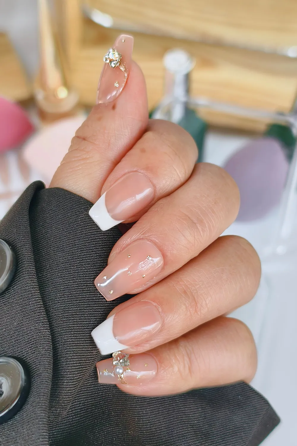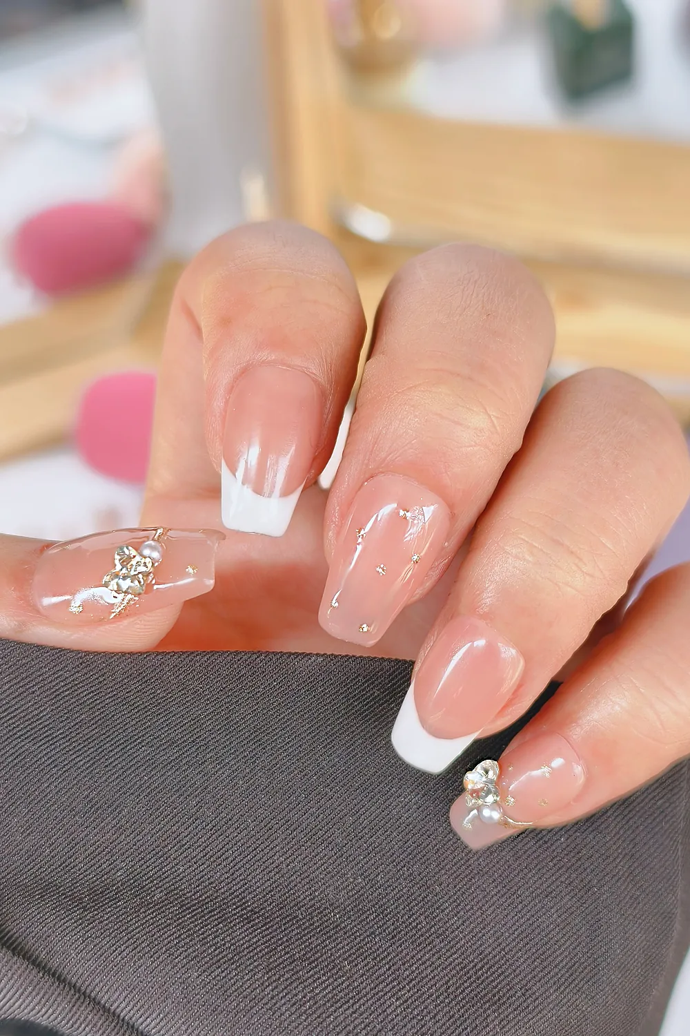 French Protez Tırnak 10 Adet El Yapımı Takma Tırnak Seti 2402