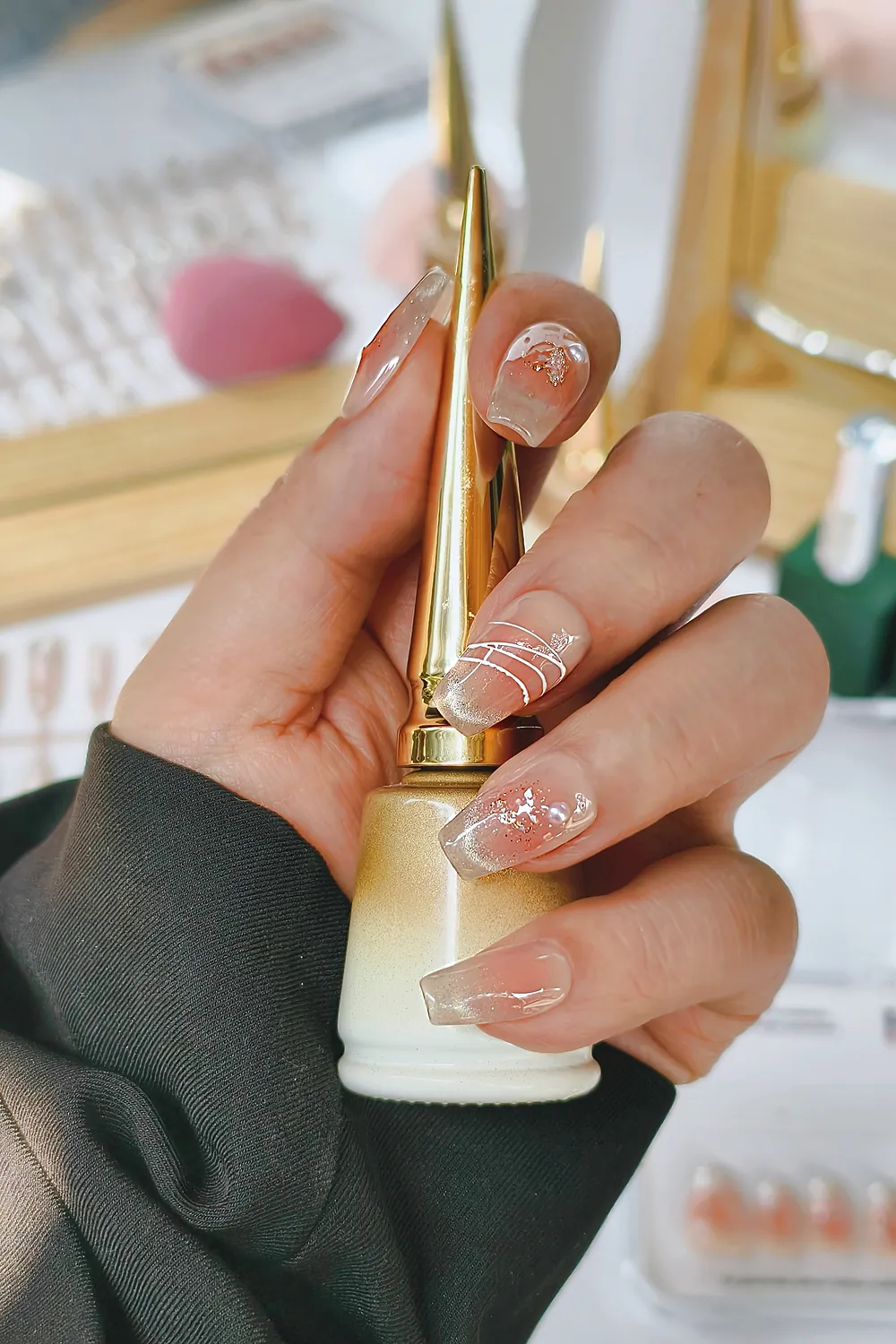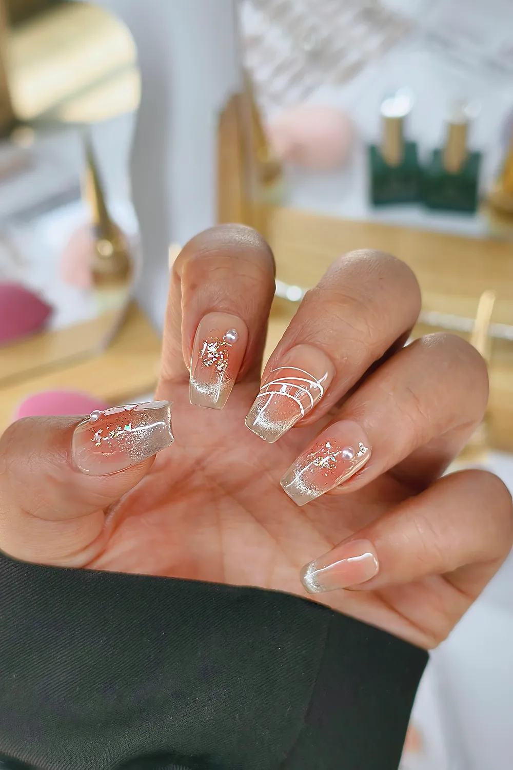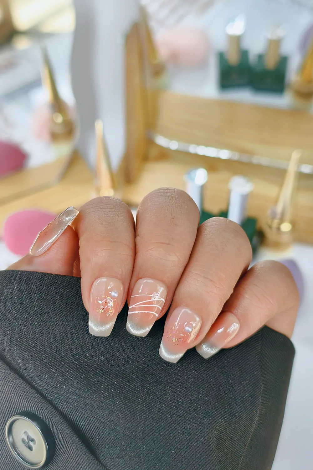 Naturel Kedi Gözü Protez Tırnak 10 Adet El Yapımı Takma Tırnak Seti 2308