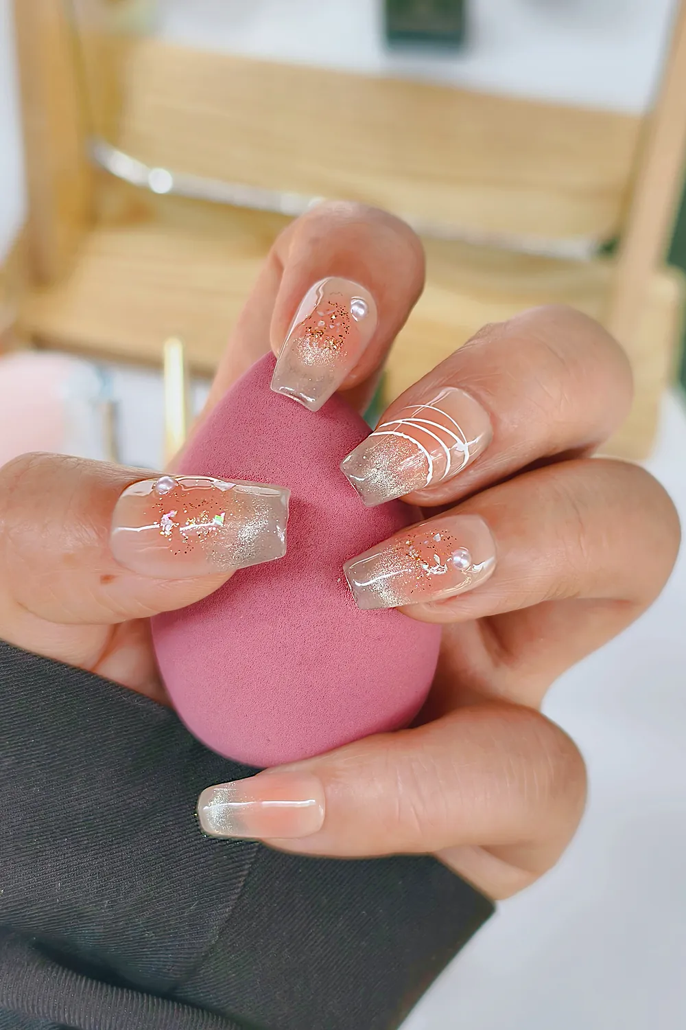 Nude Protez Tırnak 10 Adet El Yapımı Takma Tırnak Seti 3506