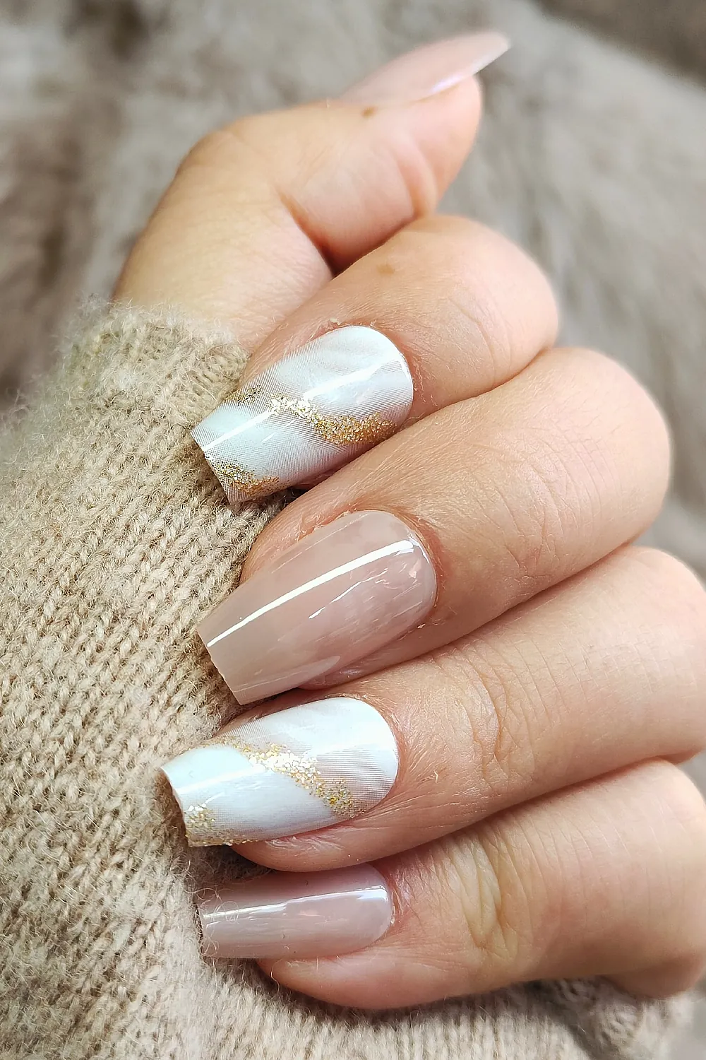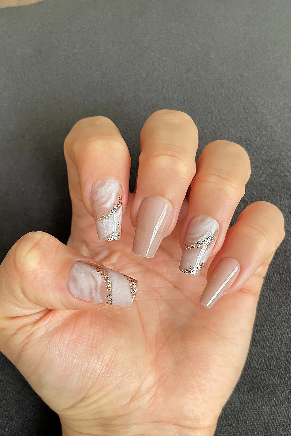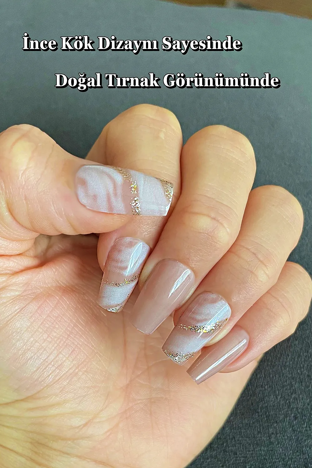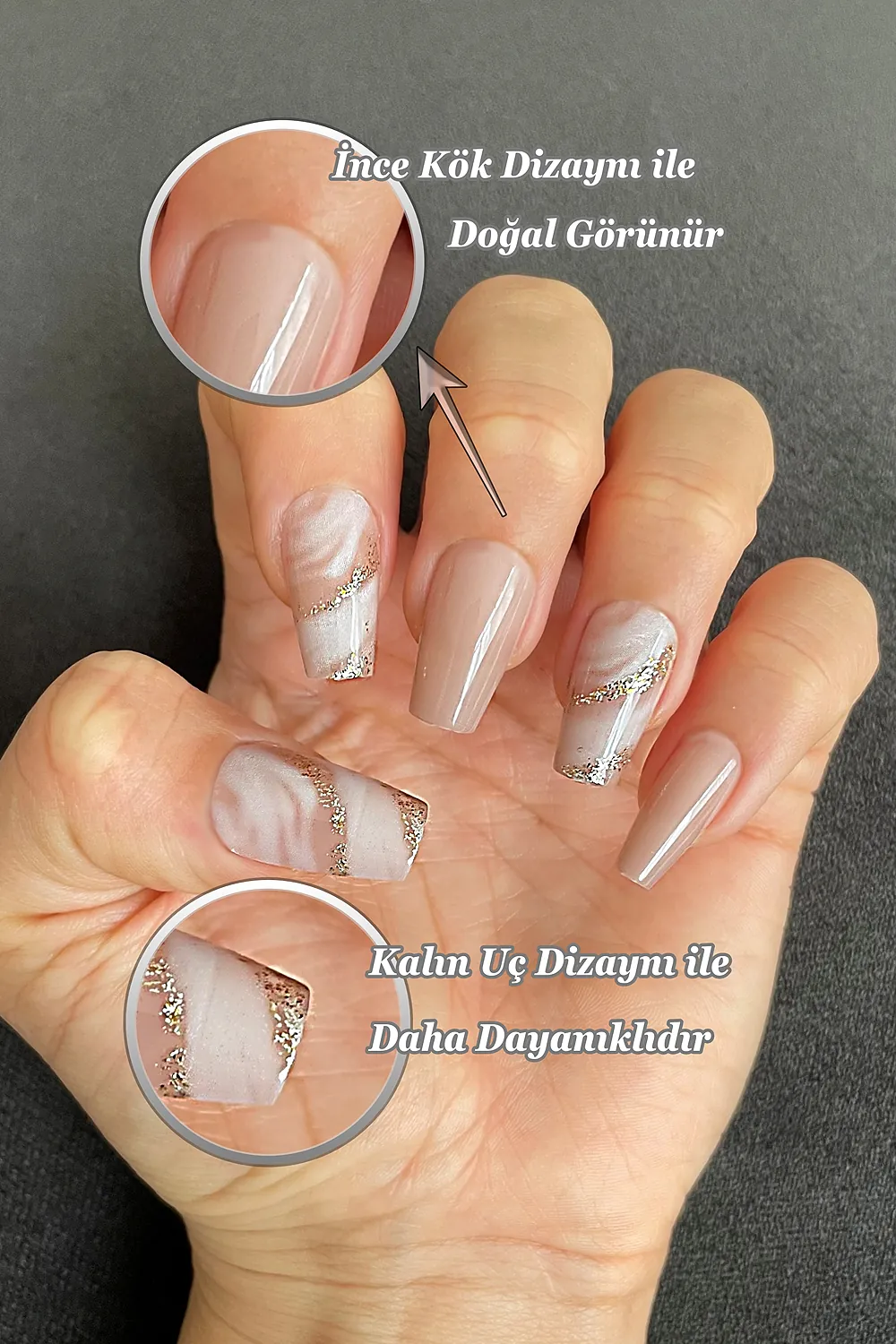 Nude 24 Adet Simli Küt Takma Tırnak Seti Desenli. W1498