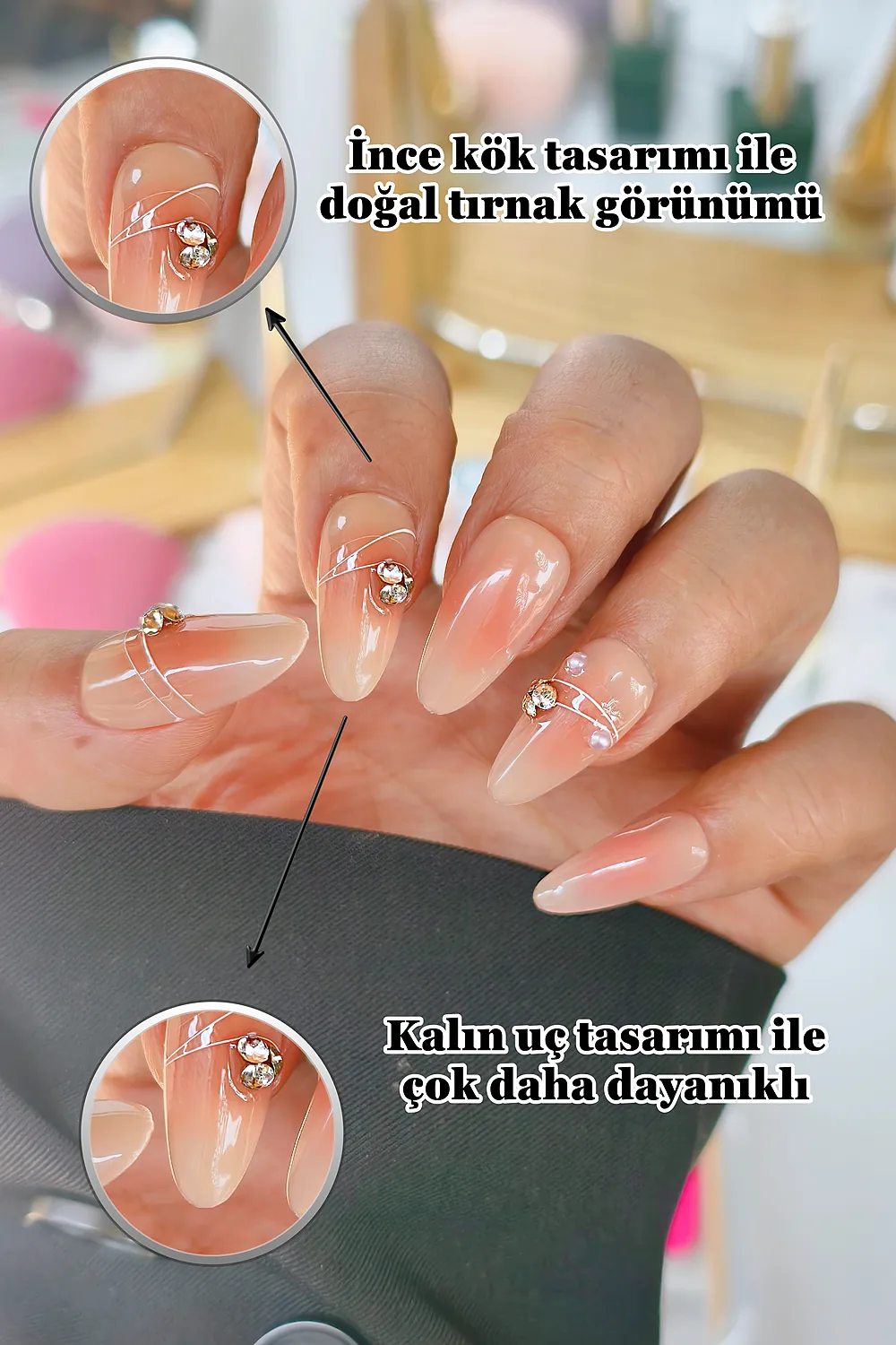 [Akıllı Tasarım] Tırnakların kök tarafının ince dizaynı sayesinde gerçek tırnağa yakın bir görünüm elde edersiniz. Tırnak ucunun kalın olması sayesinde ise Easy Beauty tırnaklar daha sağlamdır ve kolay kolay kırılmaz veya çatlamaz.