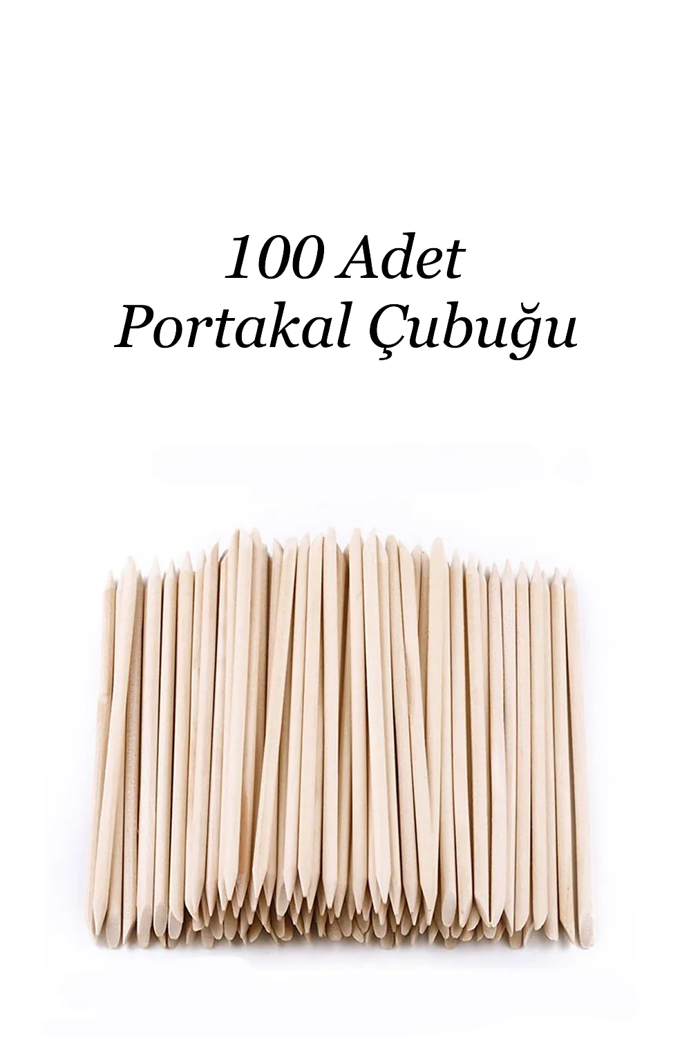 Et İtici Portakal Çubuğu 100’lü Paket, manikür, pedikür ve protez tırnak uygulamalarında tırnak etlerini nazikçe geriye itmek ve tırnak yüzeyini temizlemek için tasarlanmış, tek kullanımlık hijyenik bir temel araçtır.