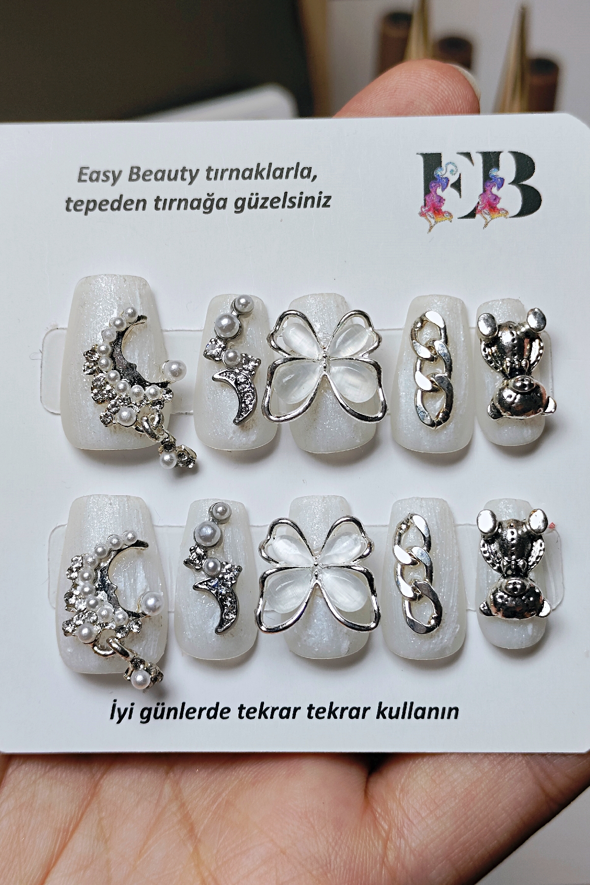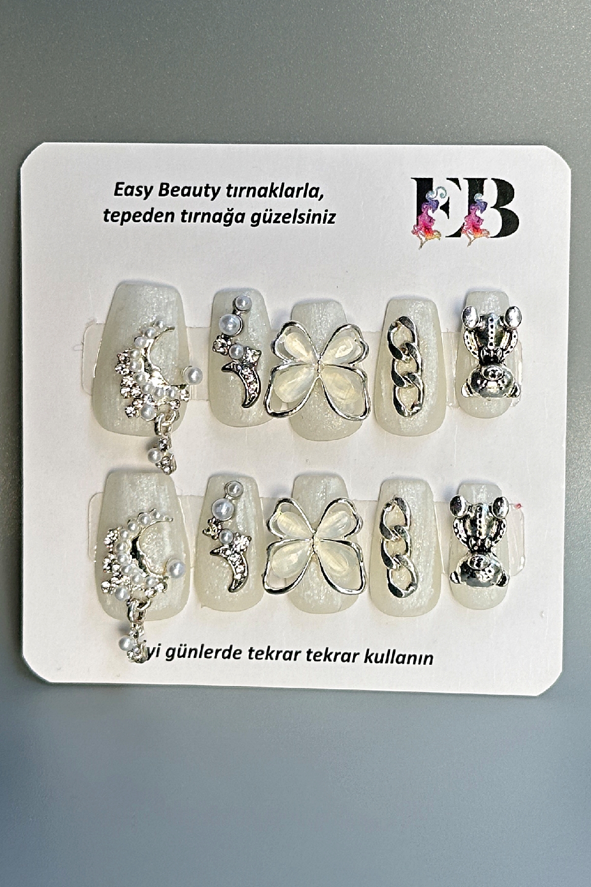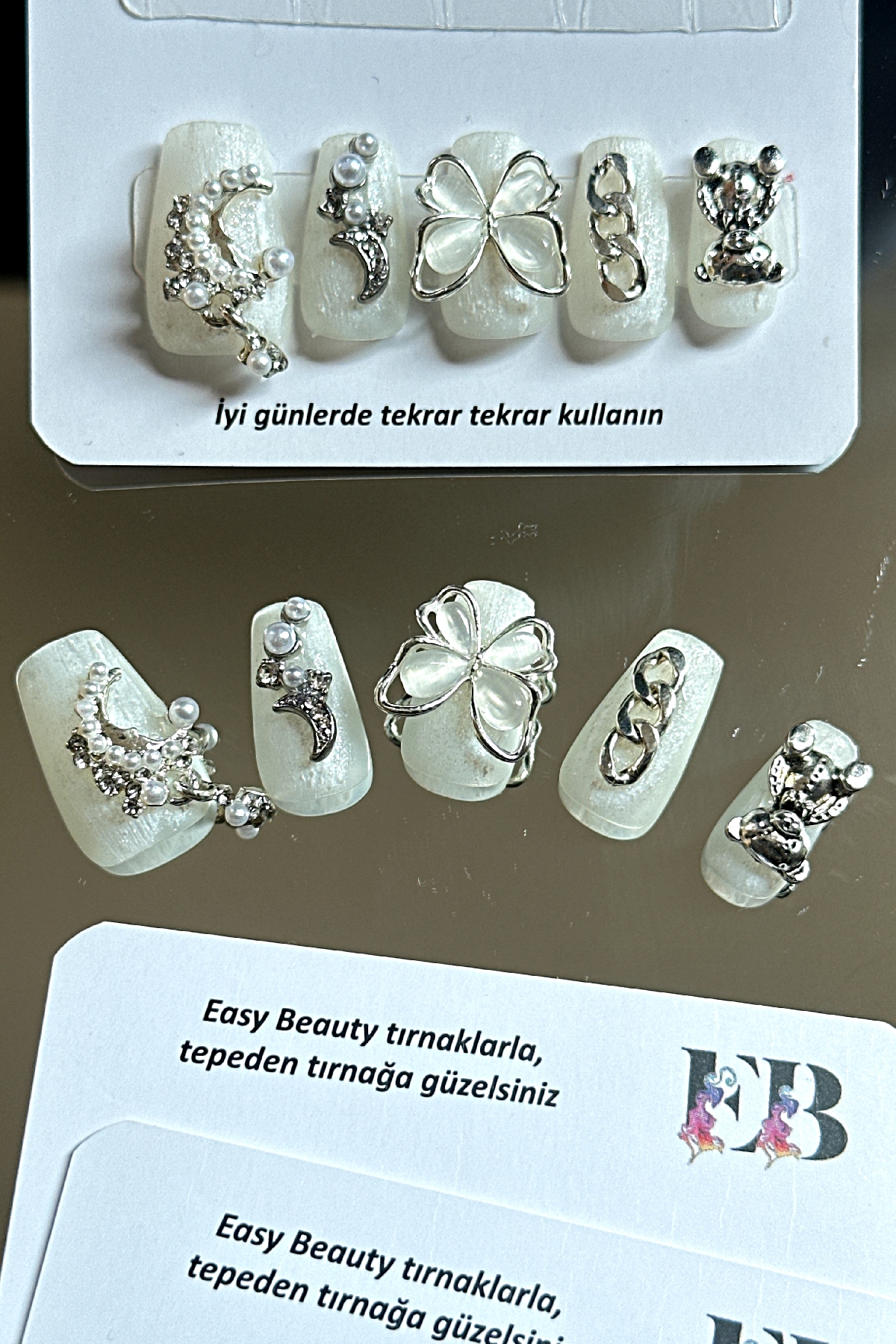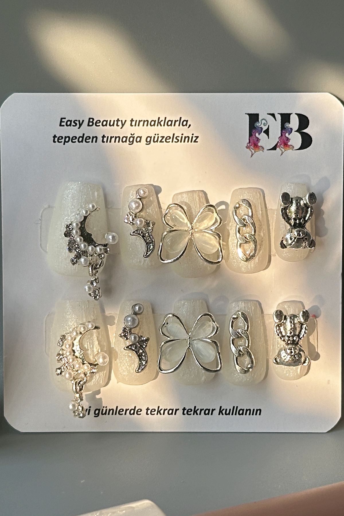 [Neden Easy Beauty] Easy Beauty takma tırnakları seçmeniz için en önemli neden ise resimde gördüğünüz ürünü satın alacak olmanızdır. Yani, burada gösterilen fotoğraflarda ya da videolarda herhangi bir oynama yapılmamıştır. Fotoğraf ve videolar Easy Beauty markası tarafından üretilmiştir, başka bir yerden kopyalanmamıştır.