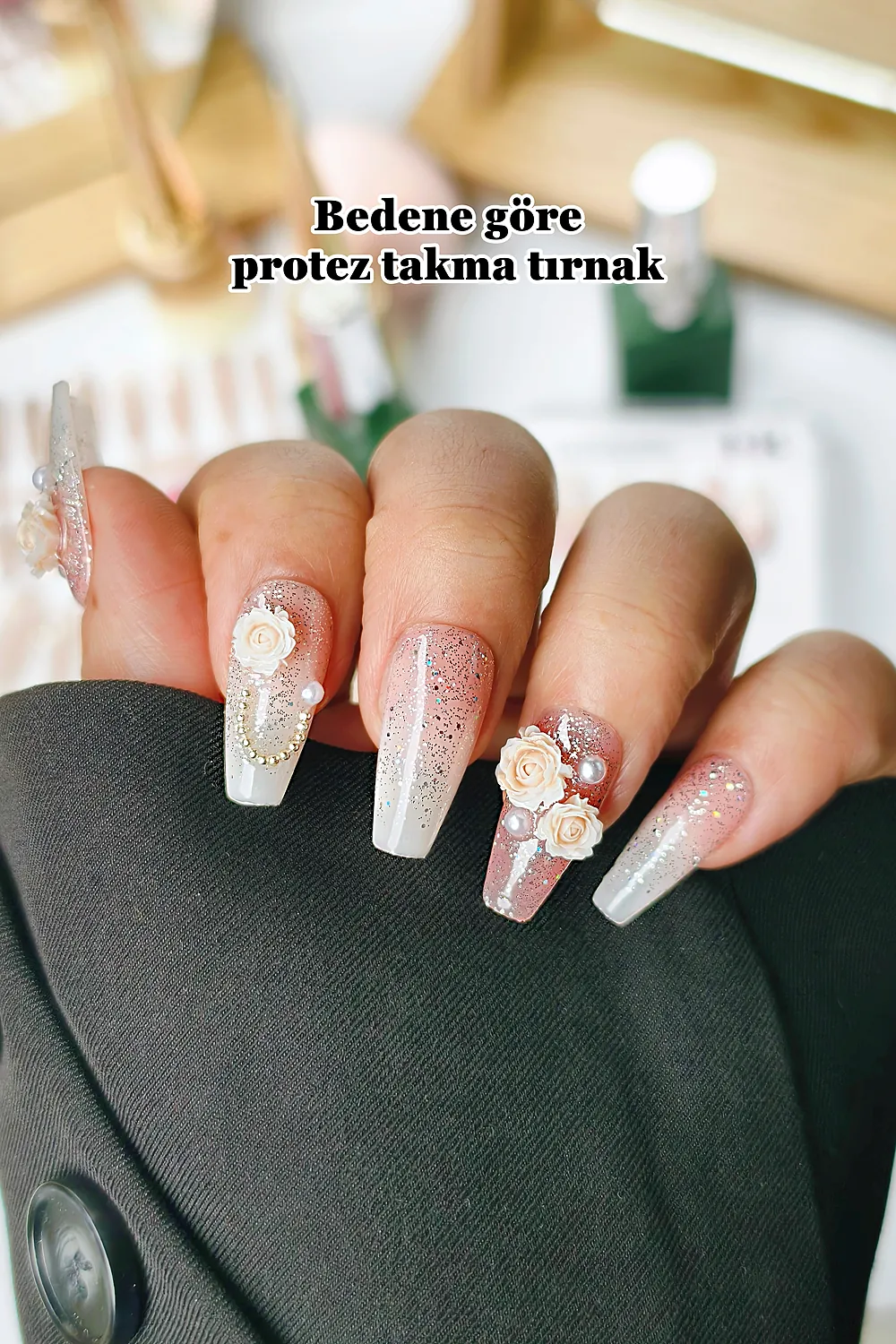 Özel Günler Için Protez Tırnak 10 Adet El Yapımı Takma Tırnak Seti 2211