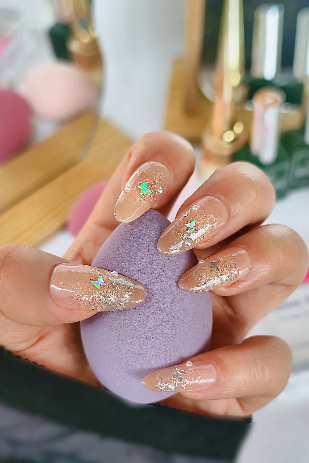 Nude Protez Tırnak 10 Adet El Yapımı Takma Tırnak Seti 3506