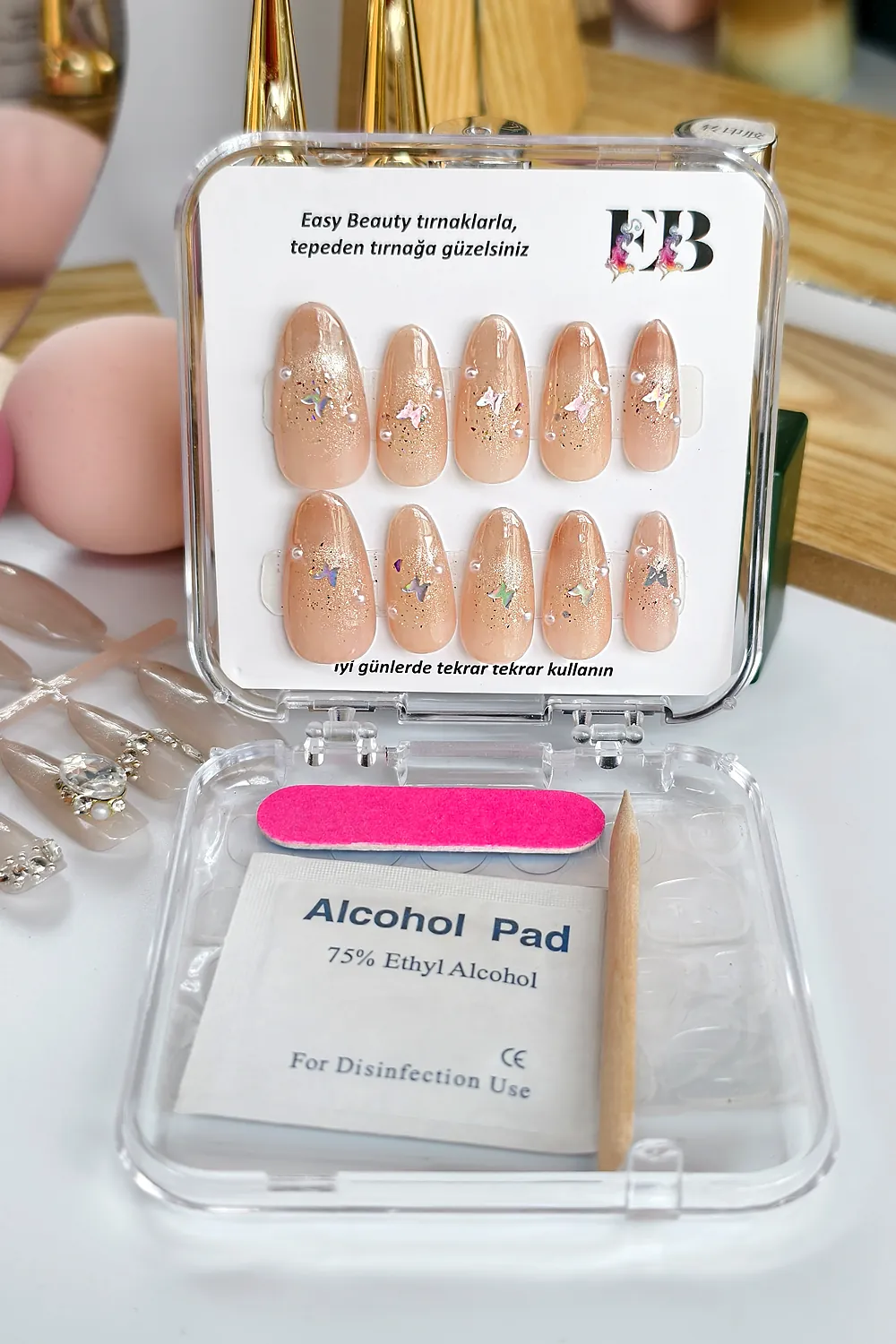 [Neden Easy Beauty] Easy Beauty takma tırnakları seçmeniz için en önemli neden ise resimde gördüğünüz ürünü satın alacak olmanızdır. Yani, burada gösterilen fotoğraflarda ya da videolarda herhangi bir oynama yapılmamıştır. Fotoğraf ve videolar Easy Beauty markası tarafından üretilmiştir, başka bir yerden kopyalanmamıştır.