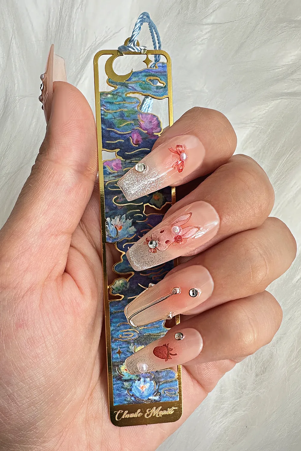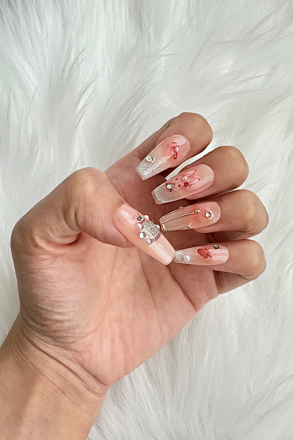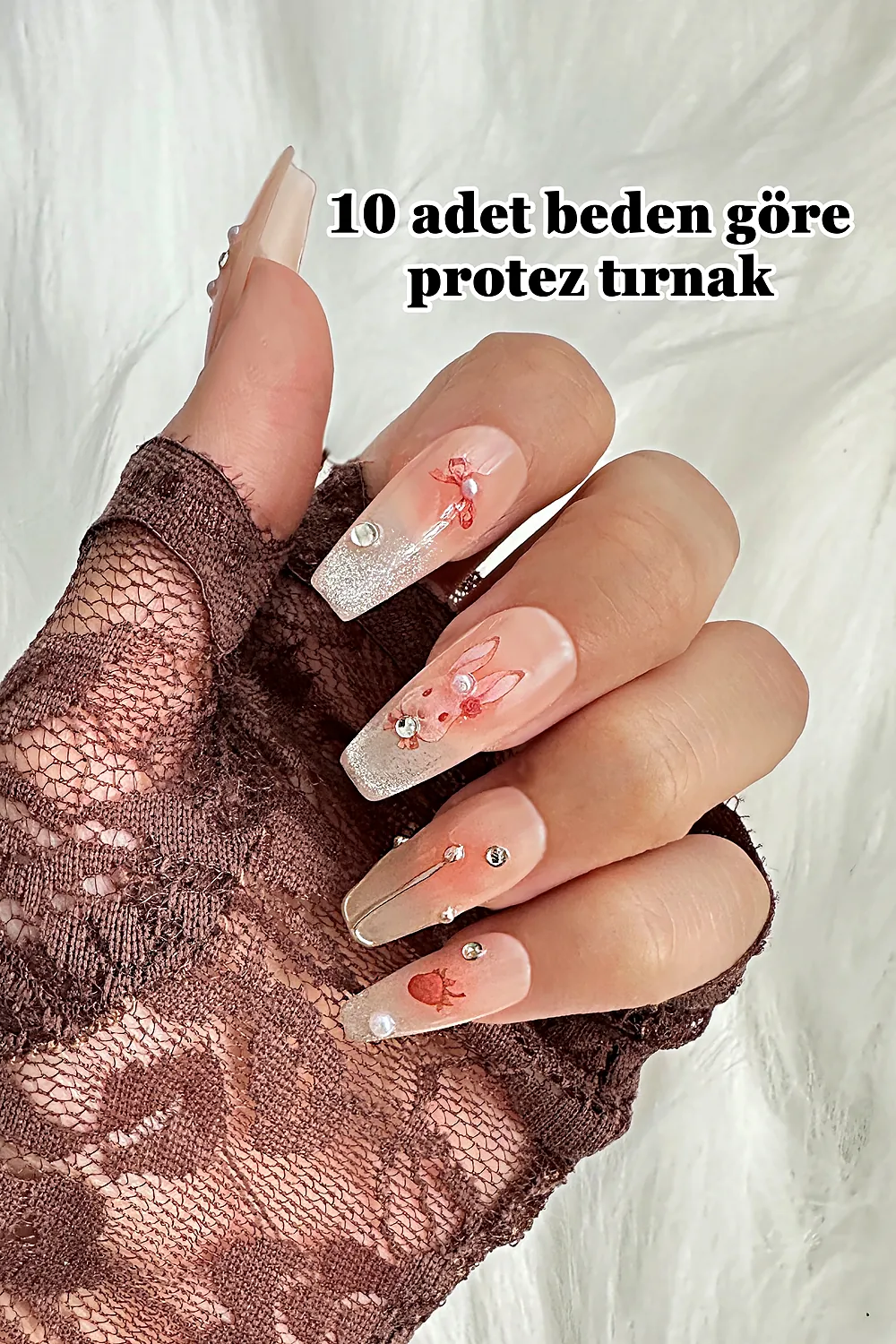 Protez Tırnak Tavşan Desen 10 Adet El Yapımı Takma Tırnak Seti 3888