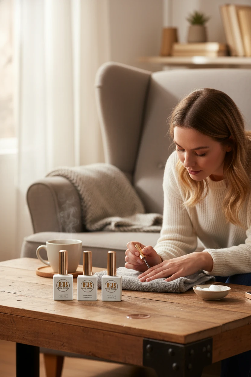 Hazırlık: Tırnaklar temizlenir, şekillendirilir, aseton ile yağdan arındırılır. Hafif bir matlaştırıcı törpü (buff) ile parlatma yapılabilir.