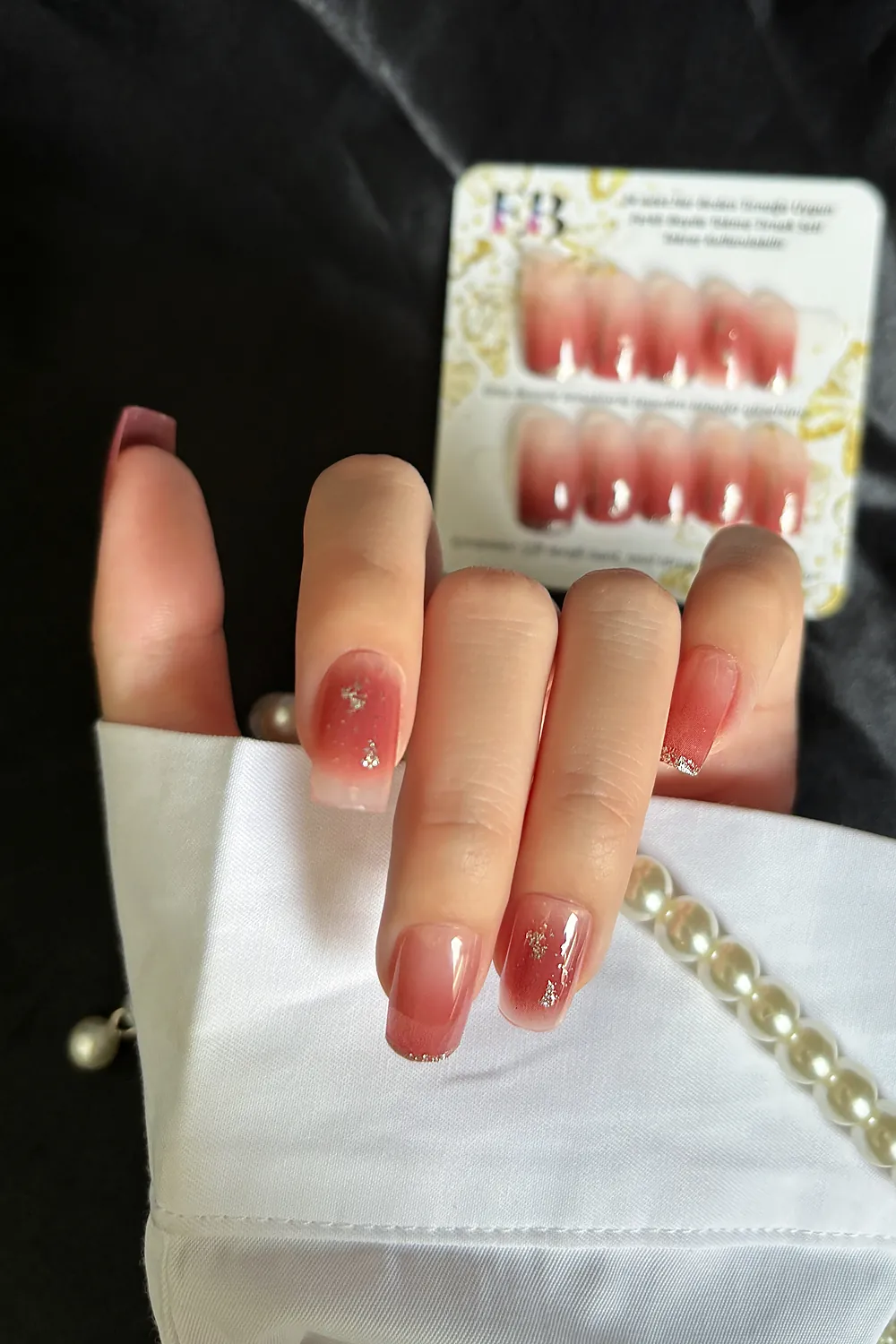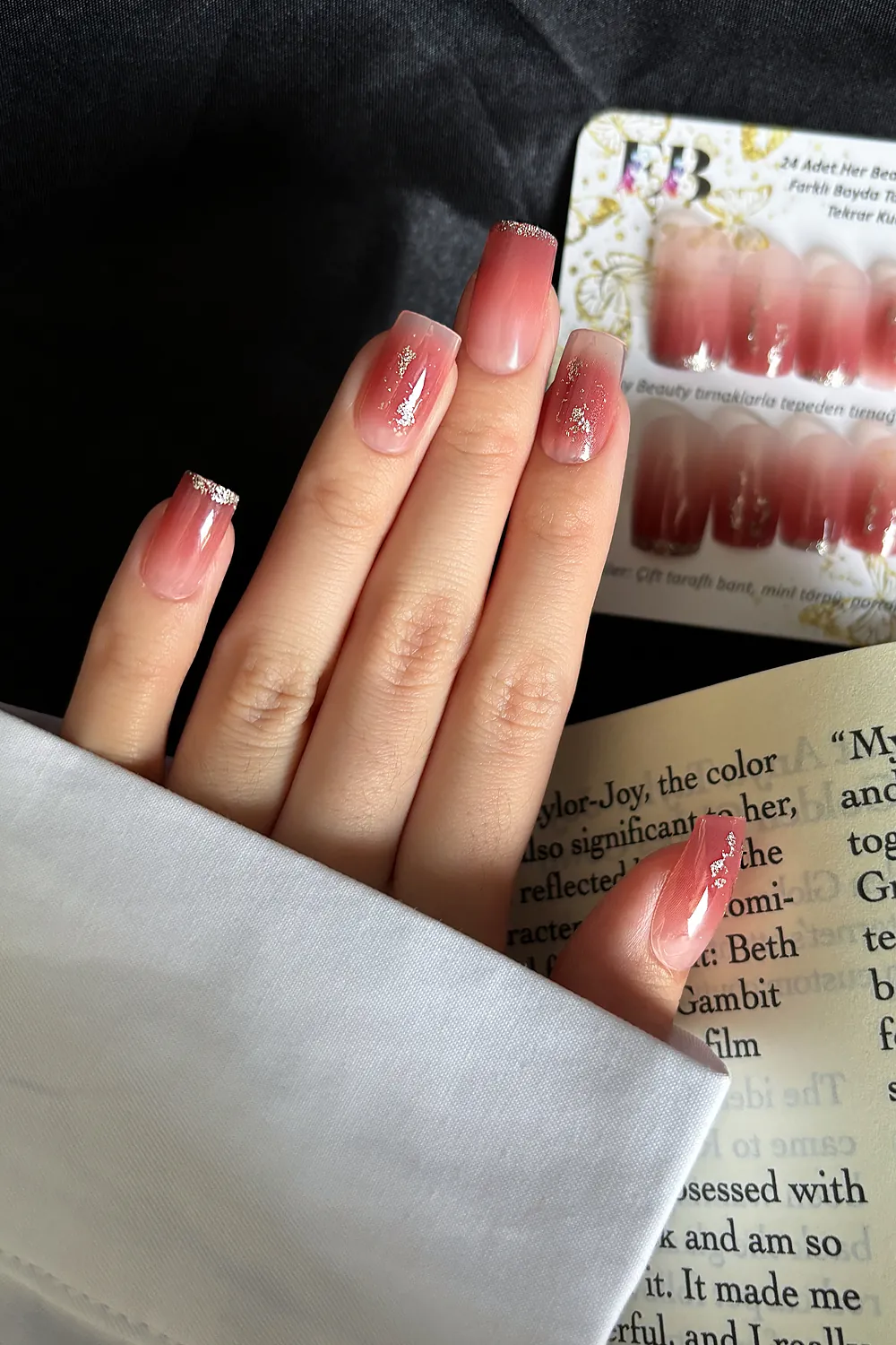 Simli Kısa Küt Takma Tırnak Seti Mat Tırnak 24 Adet Tırnak R702
