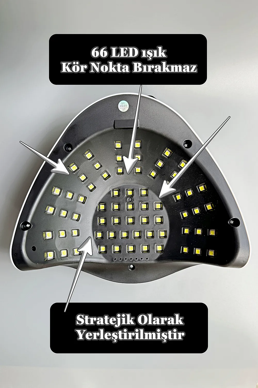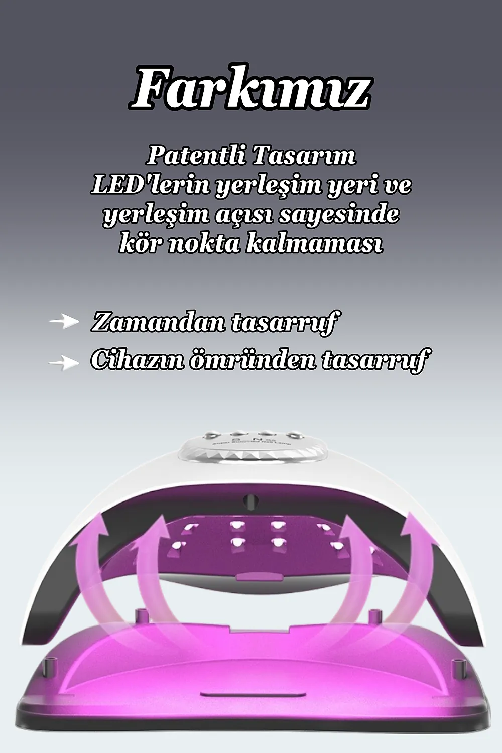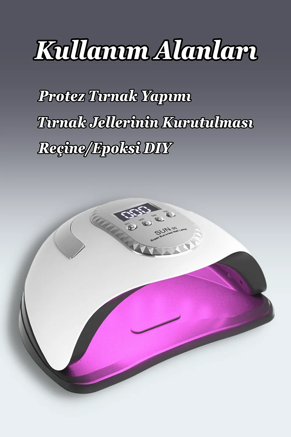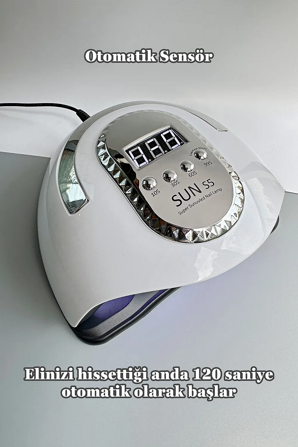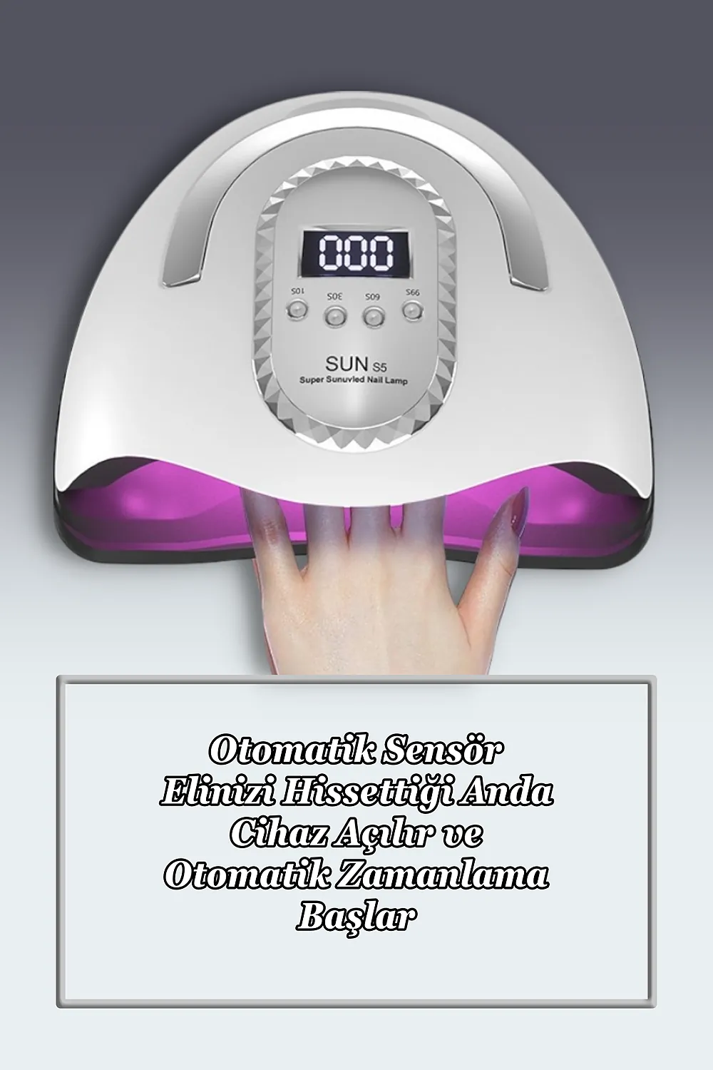 Profesyonel UV LED Kalıcı Oje Protez Tırnak Kurutucu; 66 adet stratejik olarak yerleştirilmiş LED lamba ile kör nokta kalmaz ; 280 W çıkış gücü sayesinde her türlü kalıcı oje için uygundur.; ; Zaman ayarlaması için lütfen oje üreticisi ile görüşünüz.; ; Akıllı sensör sayesinde kullanımı kolaydır.; ; Otomatik sensör 120 saniyeye ayarlıdır.10-30-60 ve 99 olmak üzere seçilebilir 4 zaman fonksiyonu vardır.; ; Kalan zaman dijital olarak gösterilir.; ; Eğer tırnaklarınız çok hassas ise 99 saniye fonksiyonunu seçmeniz tavsiye edilir.; Bu zaman ayarında cihaz düşük güç modunda çalışır ve tırnaklarınız acımaz.; Ancak ojenin içeriğine göre kuruması için 2 kere kullanmanız gerekebilir.; ; UV lamba güneş ışığı gibi cildinizin bronzlaşmasına sebep olabilir.; Bu nedenle UV koruyucu eldiven ve parmak bandı ile ya da GÜNEŞ KREMİ ile kullanmanız tavsiye edilir.; ; LED ömrü 50.000 saattir.; ; UV kurutucu sadece kalıcı oje için uygundur.; Normal oje ile kullanılmaz.; UV kurutucu alt panelinden ayrılarak ayaklar için de kullanılabilir.; ; Ürün temizliğinde kesinlikle sıvı kullanmayınız.; Cihazı tek seferde 600 saniyeden fazla kullanmayın.
