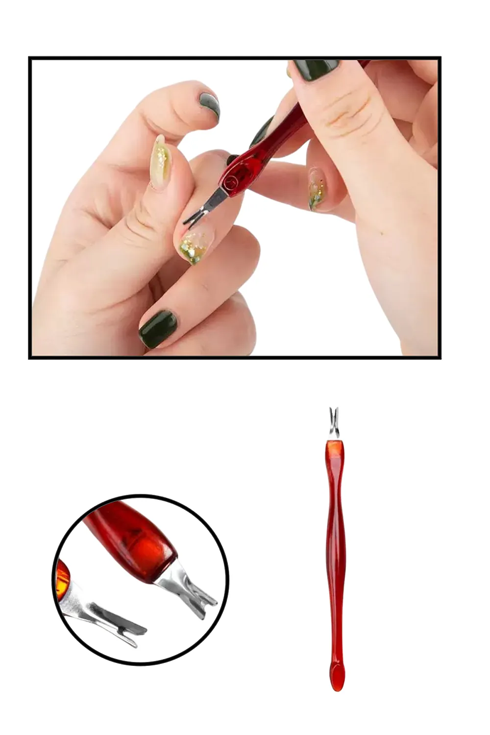 – Tırnak etlerini nazikçe temizlemek için özel olarak tasarlanmış çatal ucu sayesinde, tırnaklarınızın sağlıklı ve pürüzsüz kalmasına yardımcı olur.