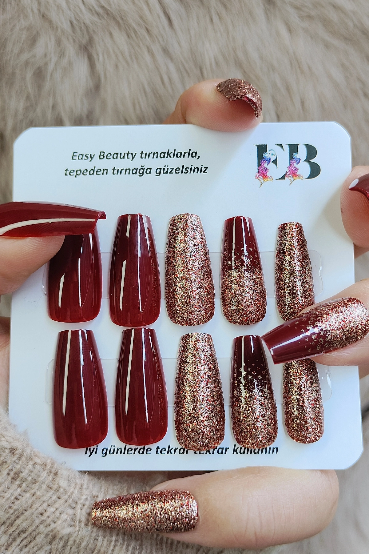 Easy Beauty takma tırnakları seçmeniz için başka bir neden ise resimde gördüğünüz ürünü satın alacak olmanızdır. Yani, burada gösterilen fotoğraflarda ya da videolarda herhangi bir oynama yapılmamıştır. Fotoğraf ve videolar Easy Beauty markası tarafından üretilmiştir, başka bir yerden kopyalanmamıştır.