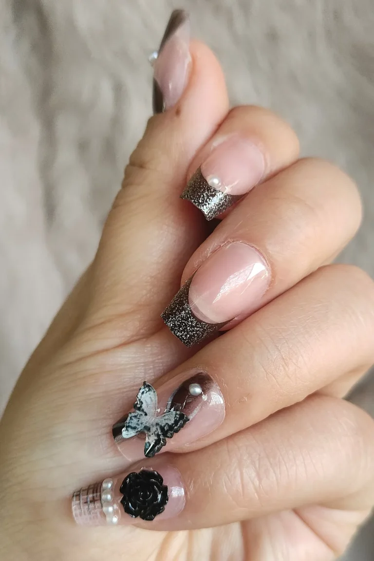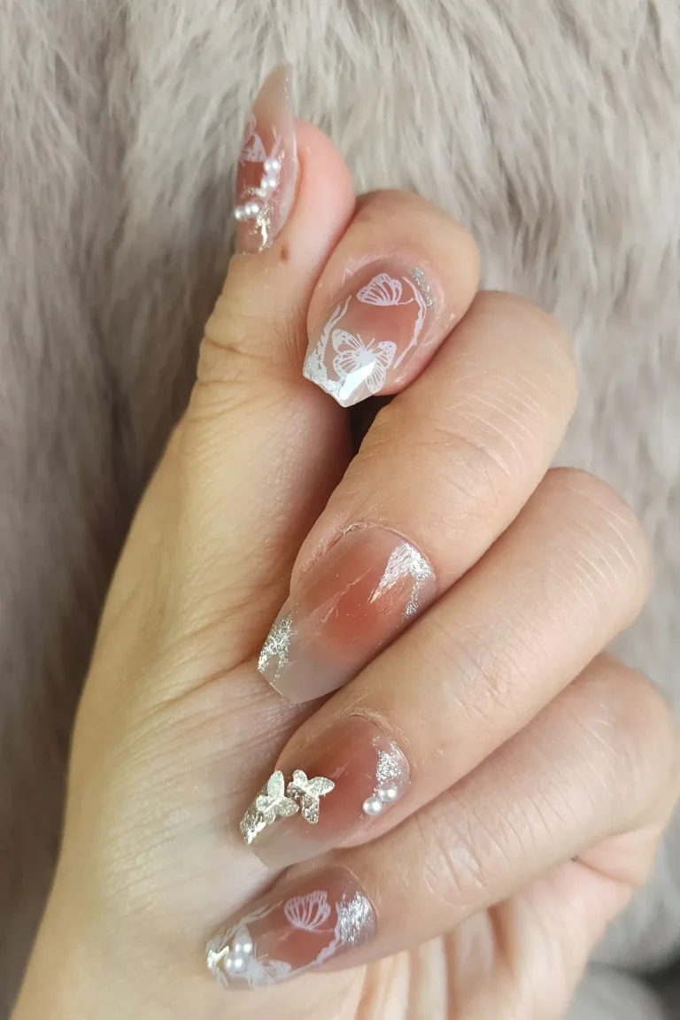 Balerin Takma Tırnak Simli Kelebekli 24 Adet Takma Tırnak Seti Z343