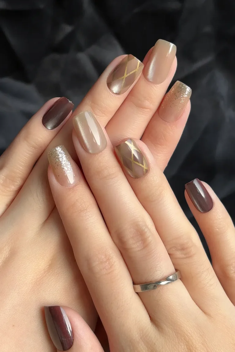 Kedi Gözü Kısa Küt Tırnak 10 Adet Takma Tırnak Seti T070