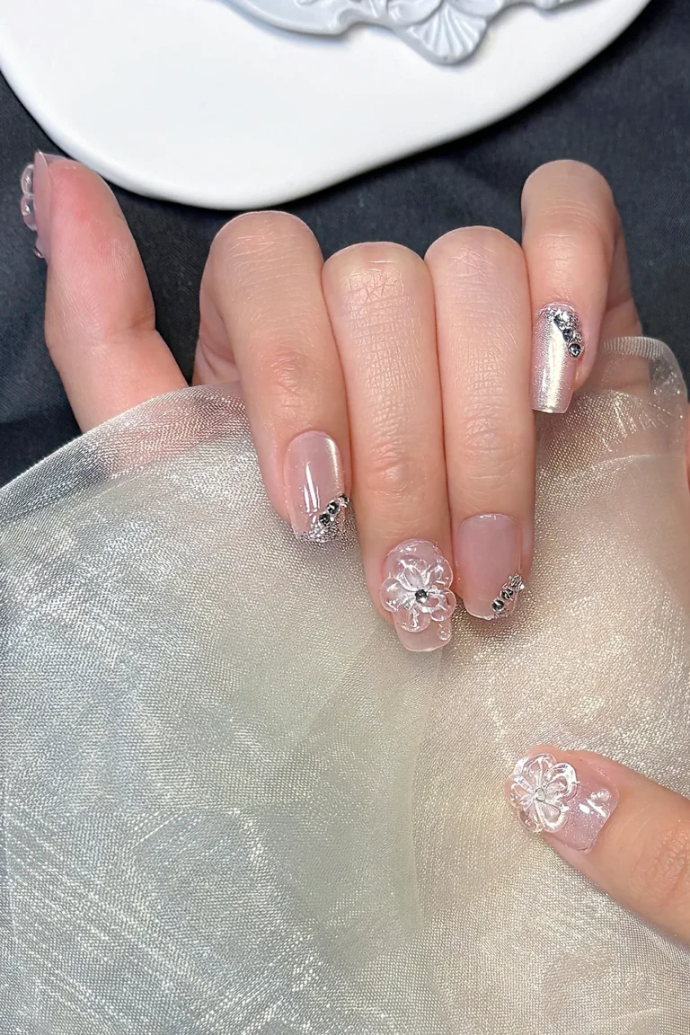Kısa Takma Tırnak Çiçek Charm 10 Adet Takma Tırnak Seti T068